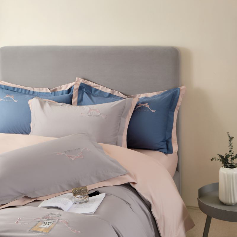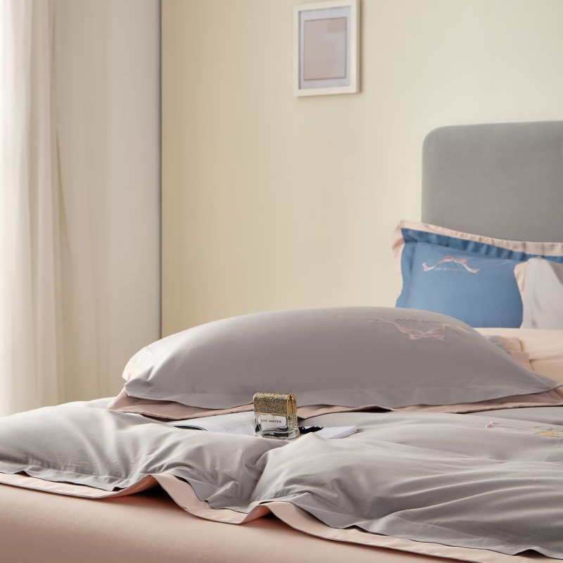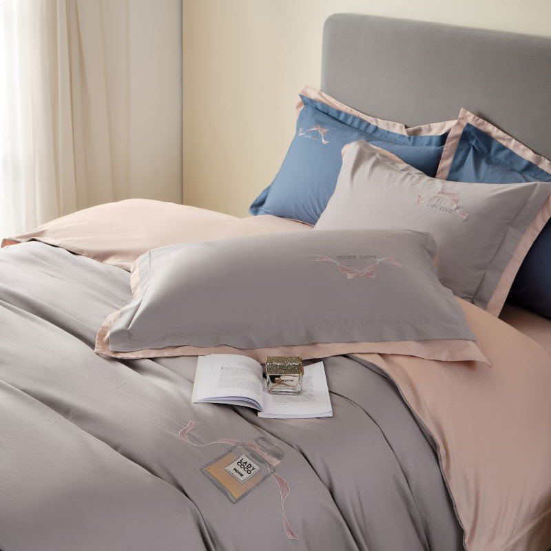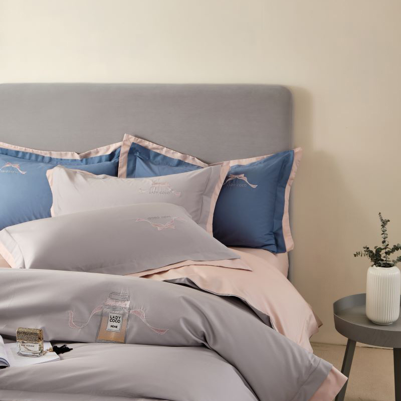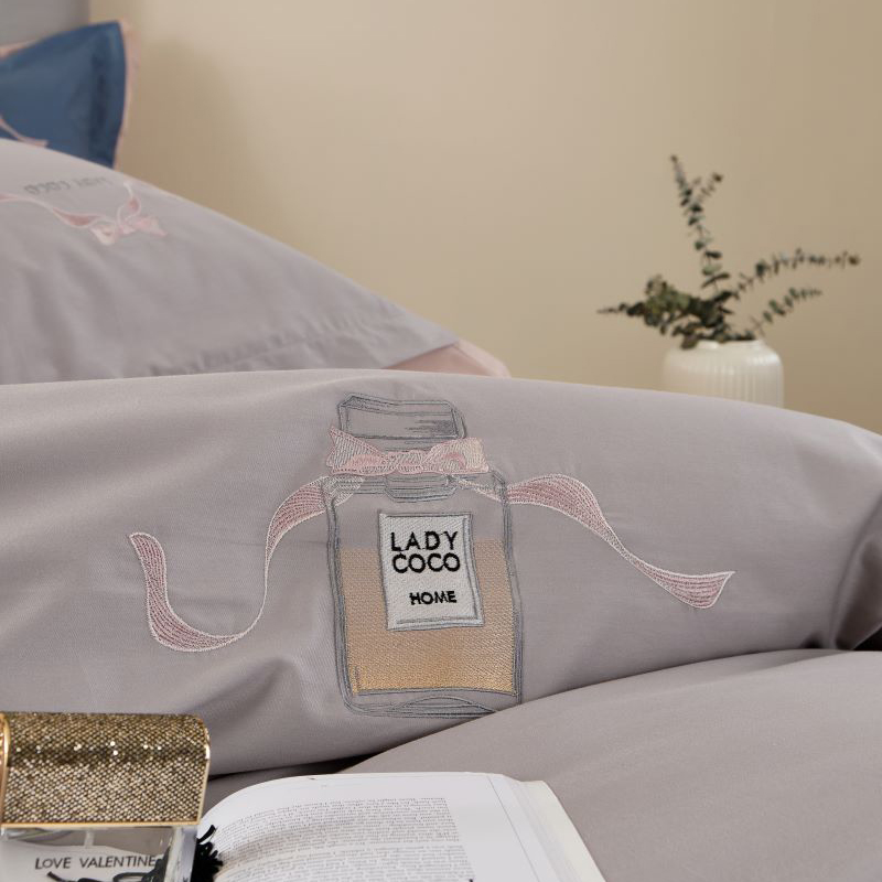 LADY COCO 2024新款全棉翻盖式三边拉链四件套-东方好棉香水瓶系列 轻纱灰