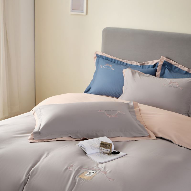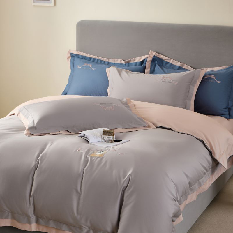(总)LADYCOCO可可家居 2025新款三开口贡缎夹棉四件套 优易套/U易套 三开口被套,唯一专利发明单位,全球专利布局(控价不低于410元),浅粉+浅灰,浅紫+浅灰,浅灰+卡其