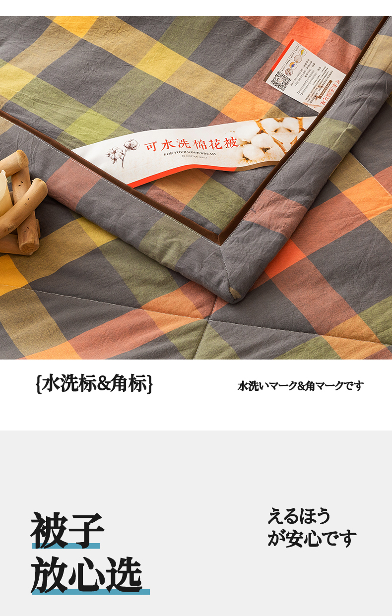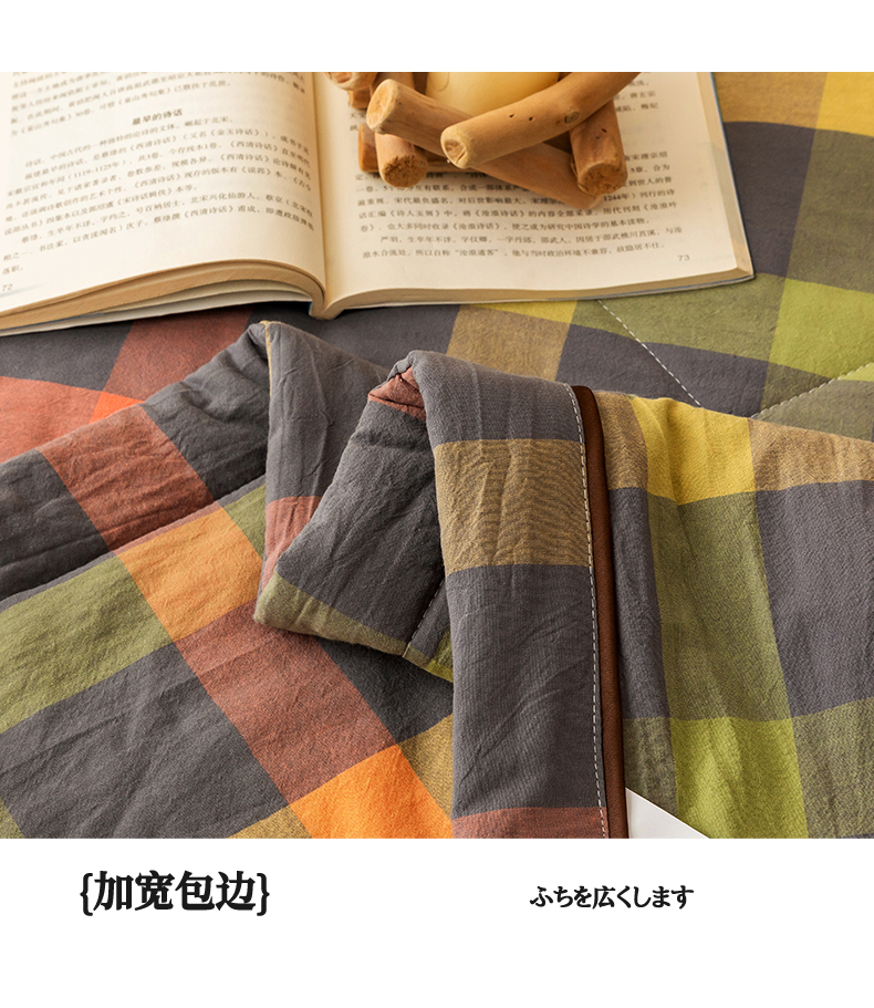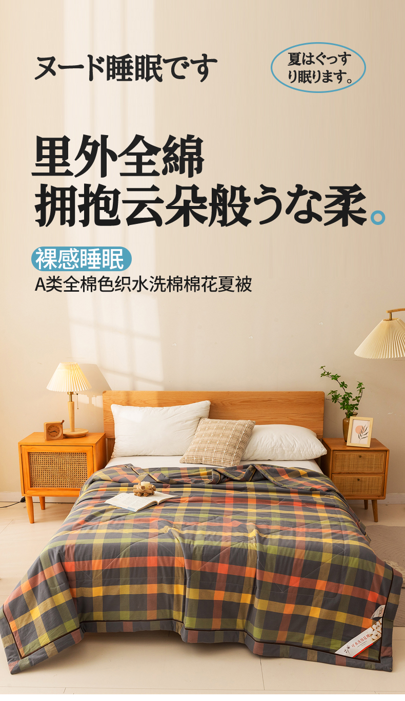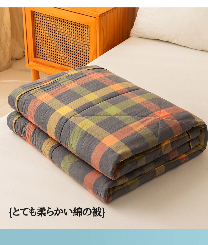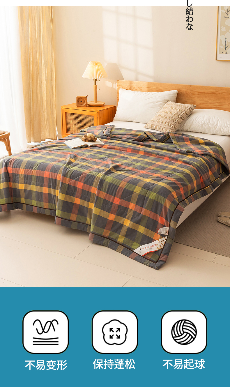 21度C 2024新款A类全棉色织水洗棉棉花夏被 灰橘中格