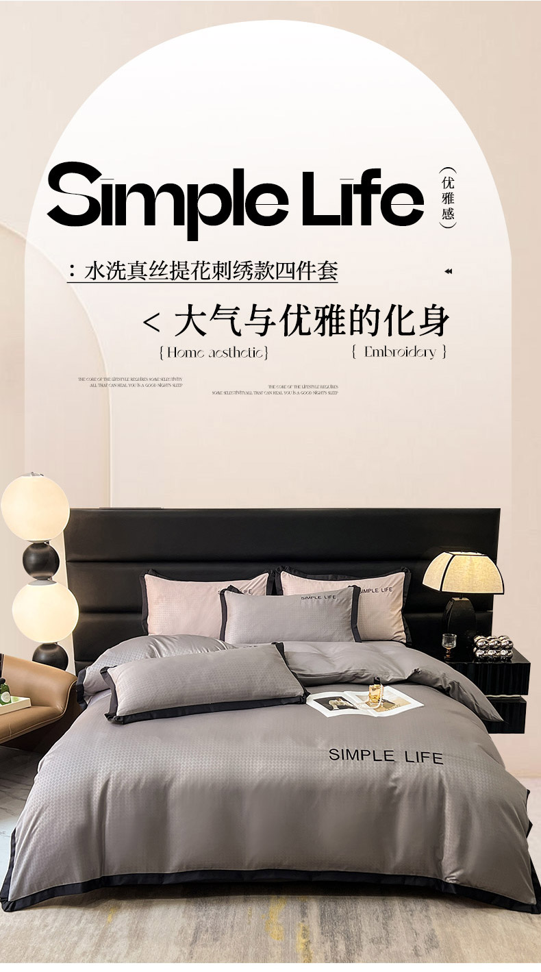 艾米家居 2025水洗真丝提花系列简约生活 简约生活珠光灰