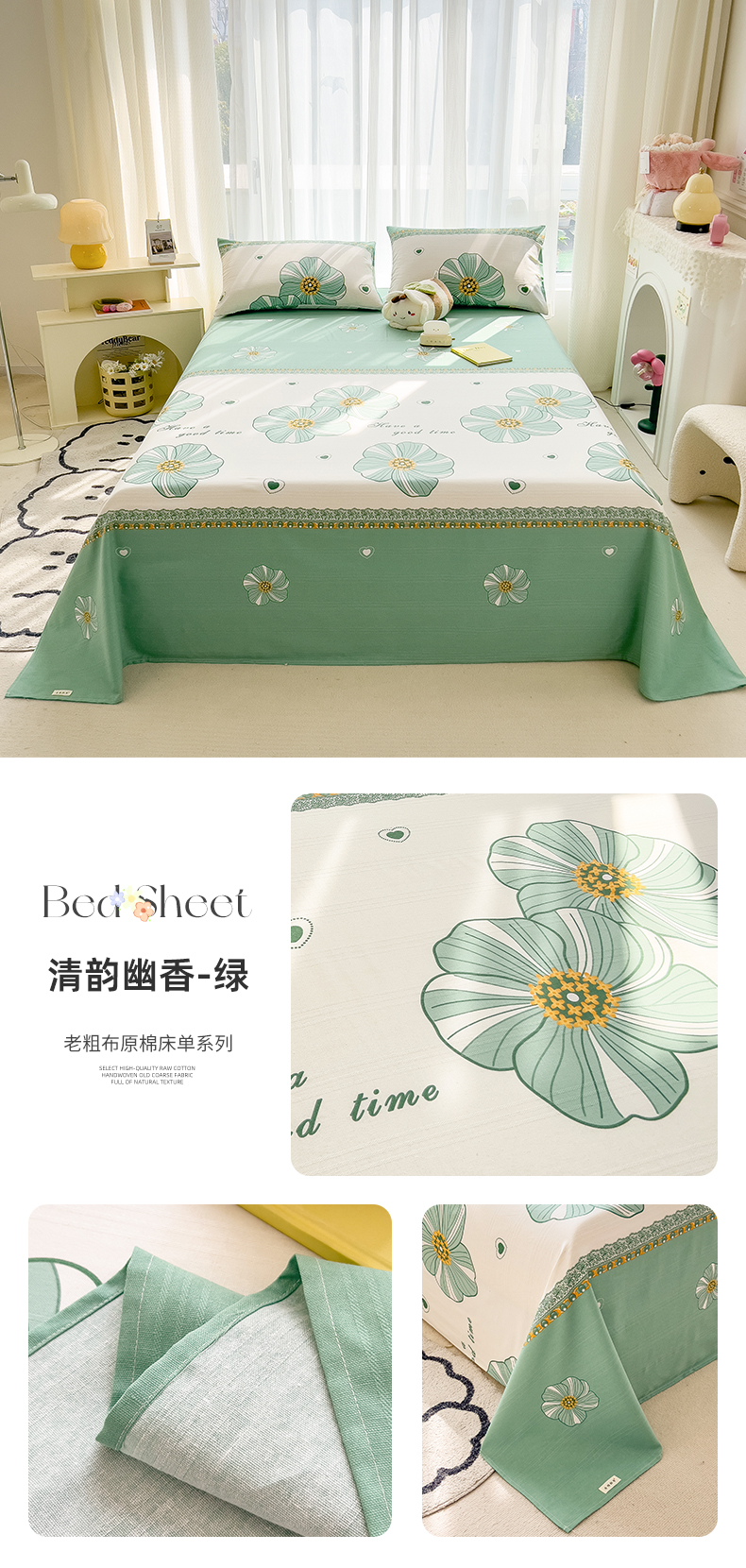 当前位置: 91家纺网 > 商品网购 > 床品套件 > 三件套 > 芃成家纺 2024新款老粗布床单款 总2 清韵幽香-绿