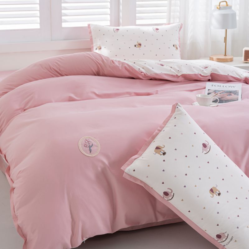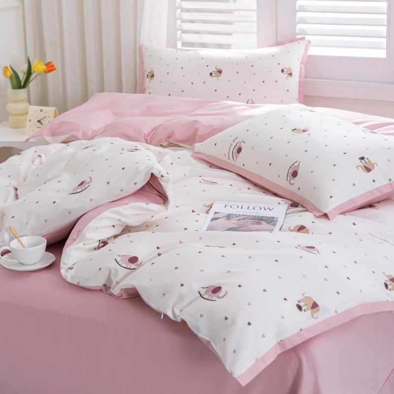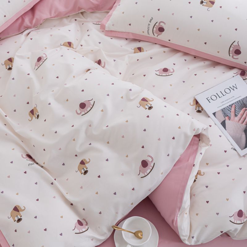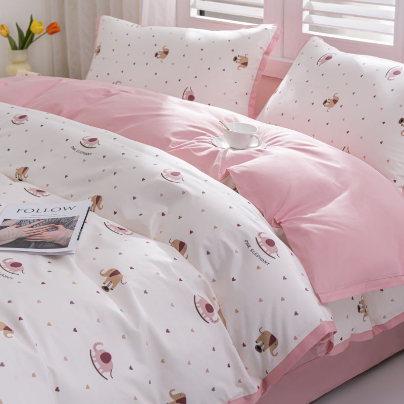 优姿家纺 新款纯棉长绒棉小清新ins风印花四件套-系列一 象北鼻