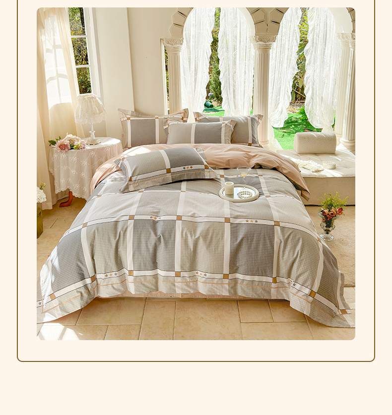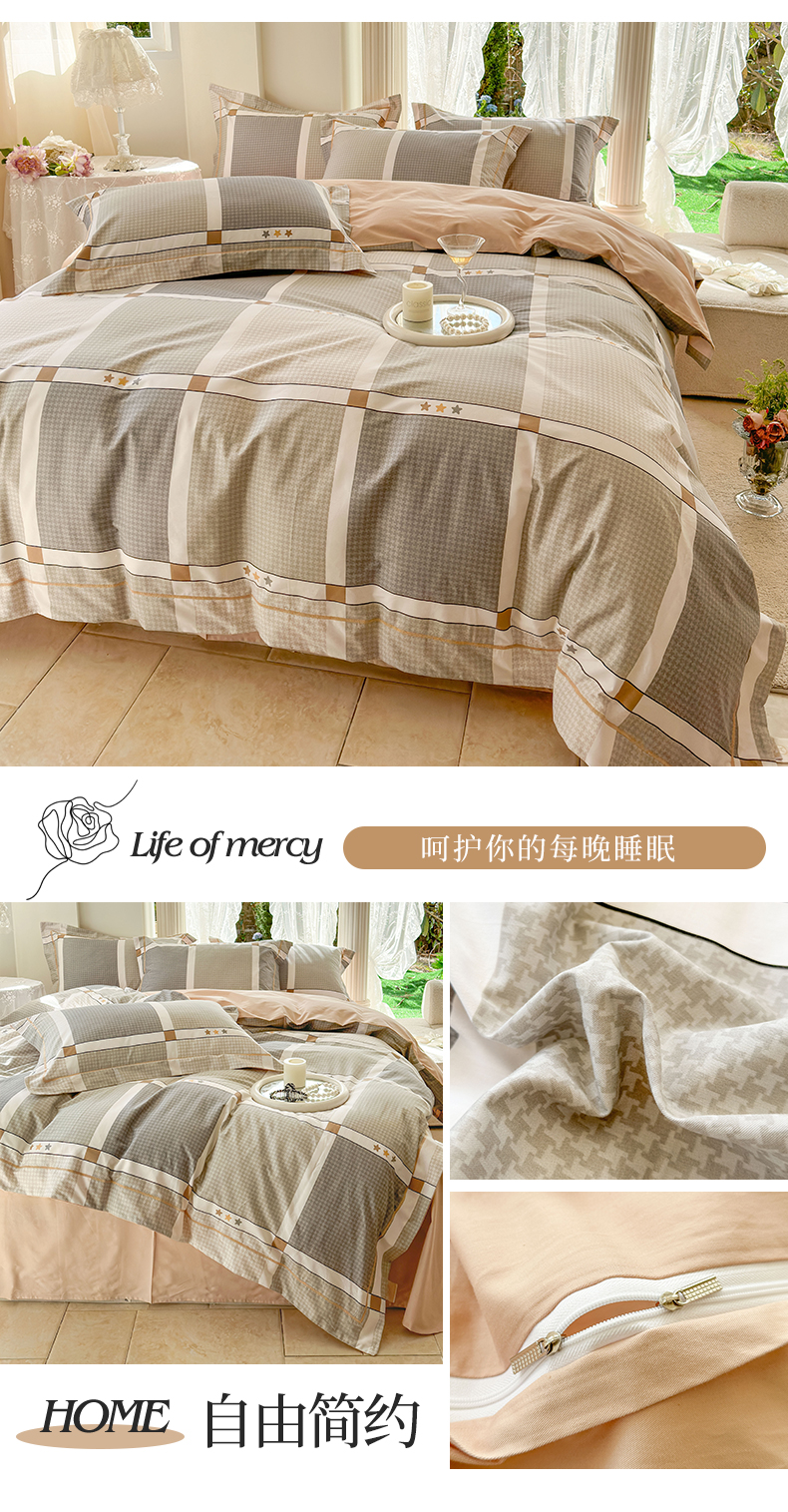 当前位置: 91家纺网 > 商品网购 > 床品套件 > 四件套 > 全棉普通四件套 > 7V 小清新大宽边100%纯棉法式四件套轻奢13376全棉喷气宽幅长绒棉被套床单床笠套件 自由简约