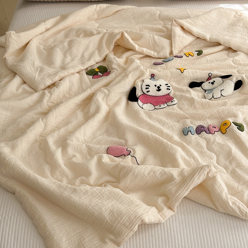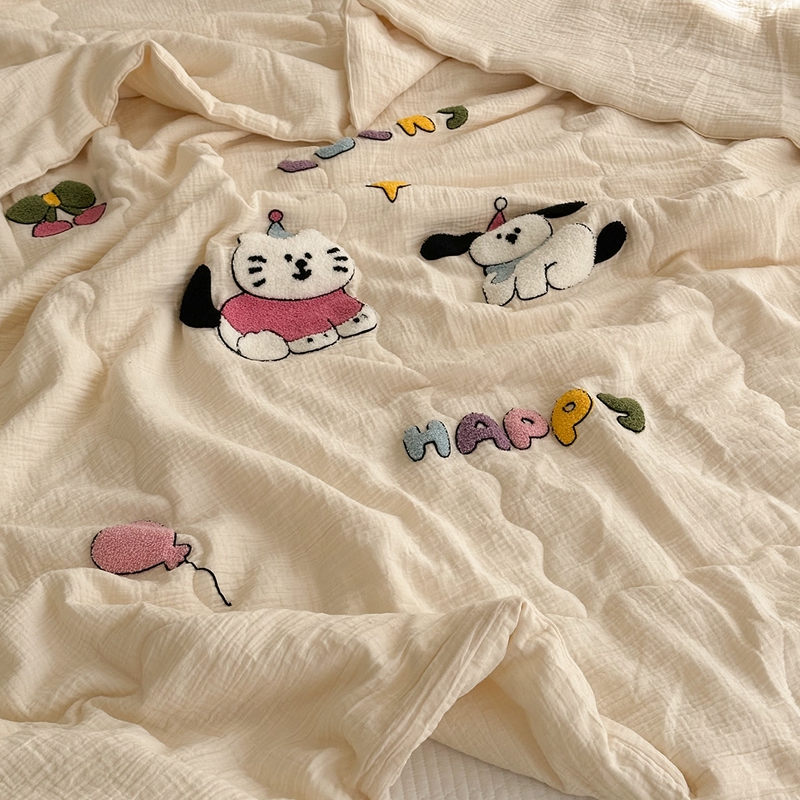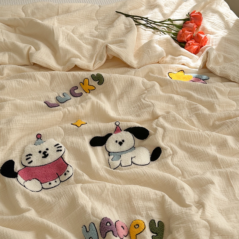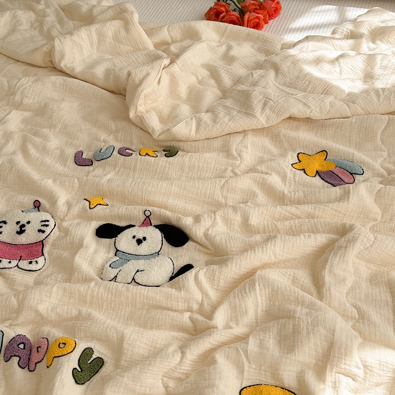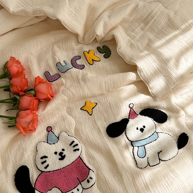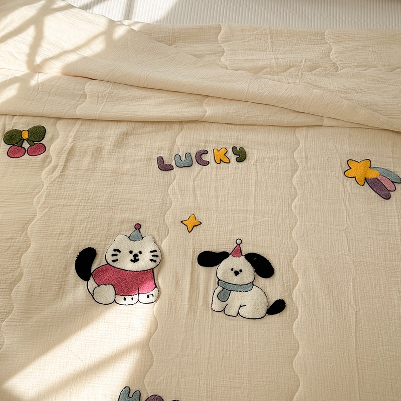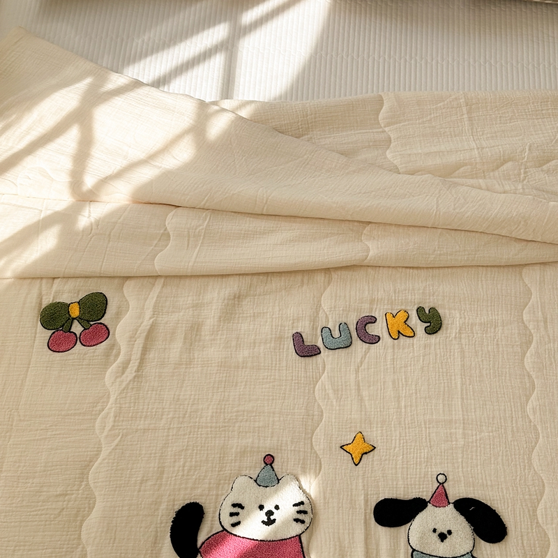 洋铭区(原狠狠爱)2024新款皱皱纱绣花夏被 甜宝小猫