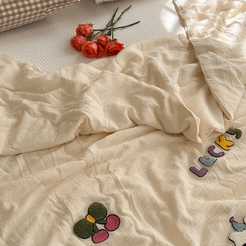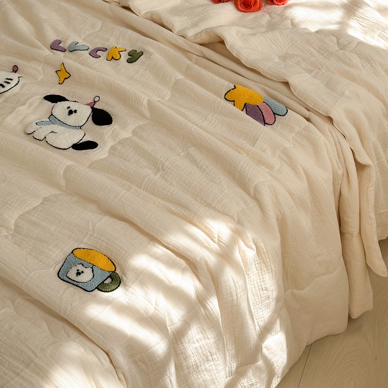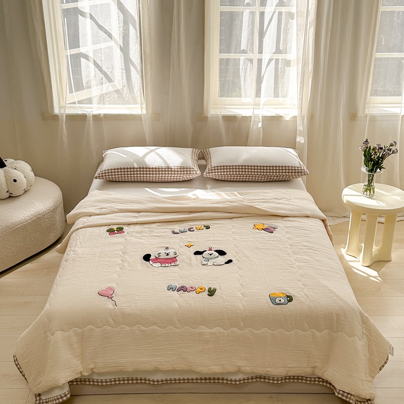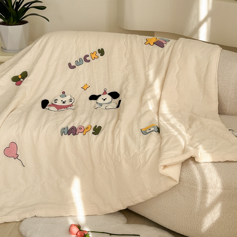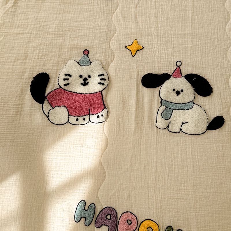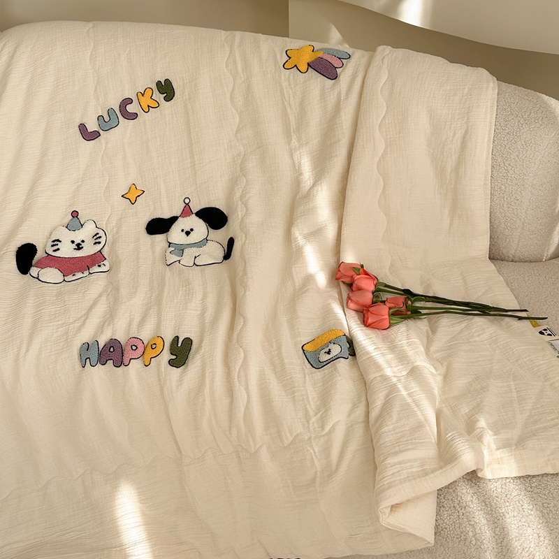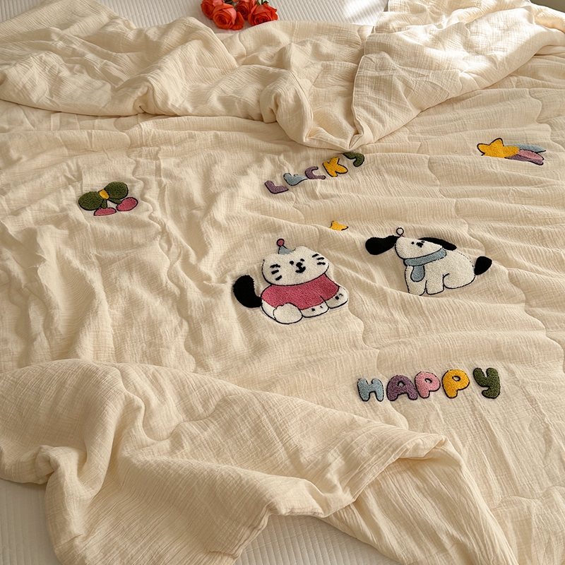 洋铭区(原狠狠爱)2024新款皱皱纱绣花夏被 甜宝小猫
