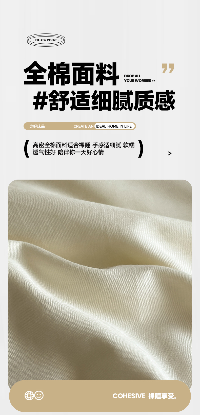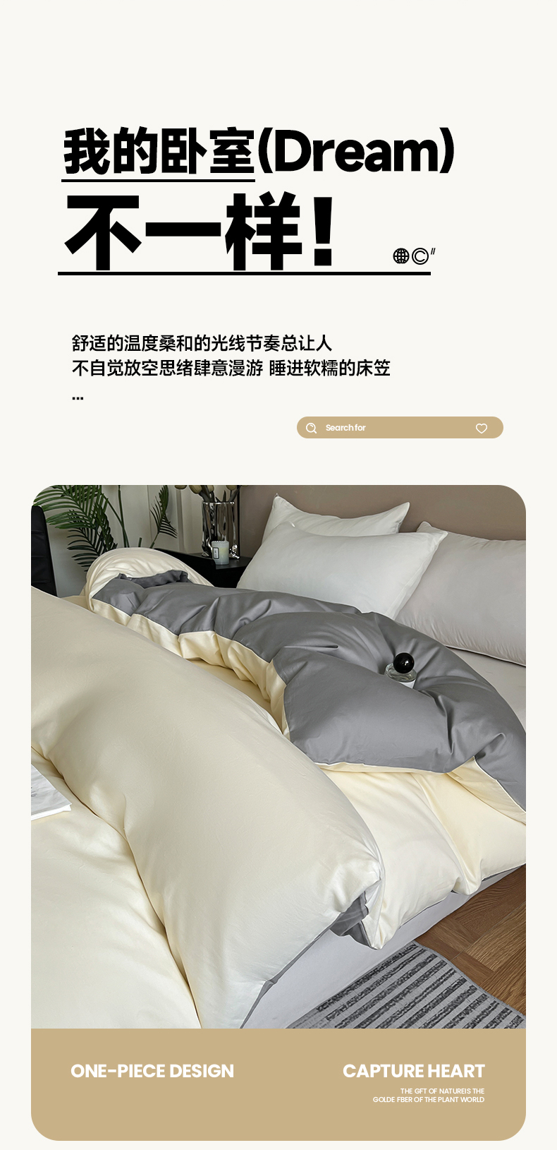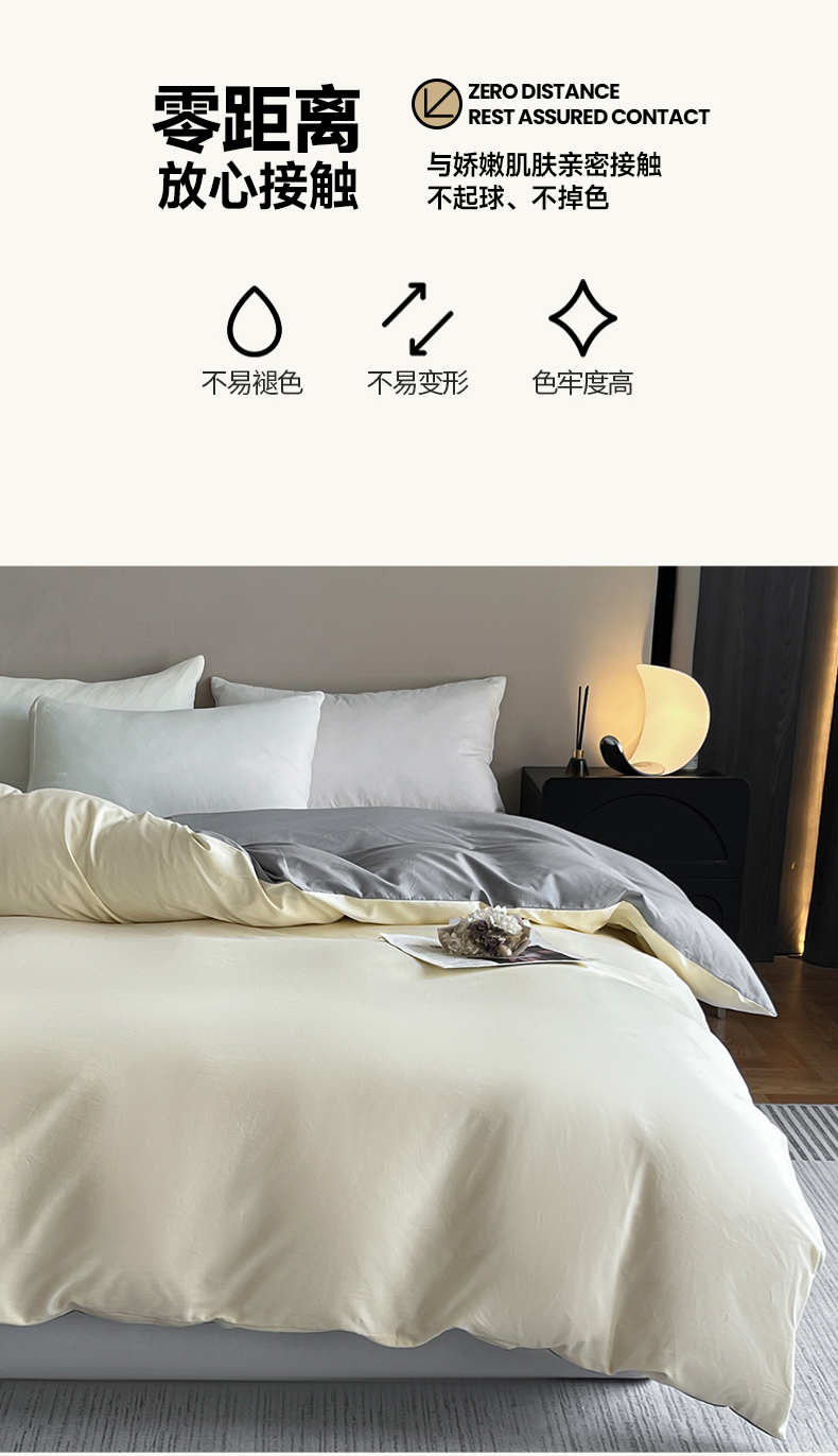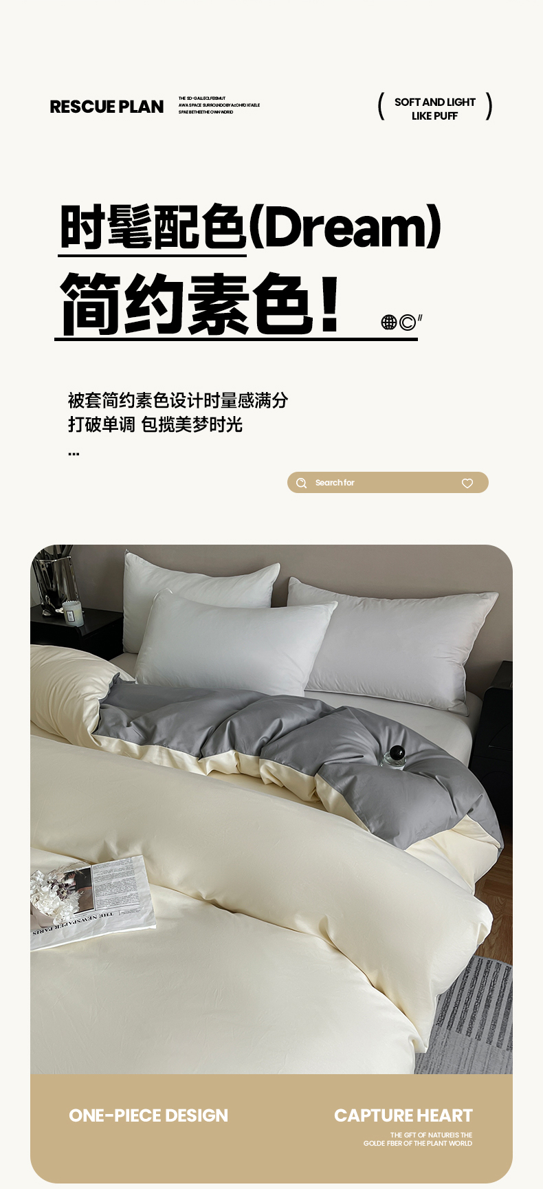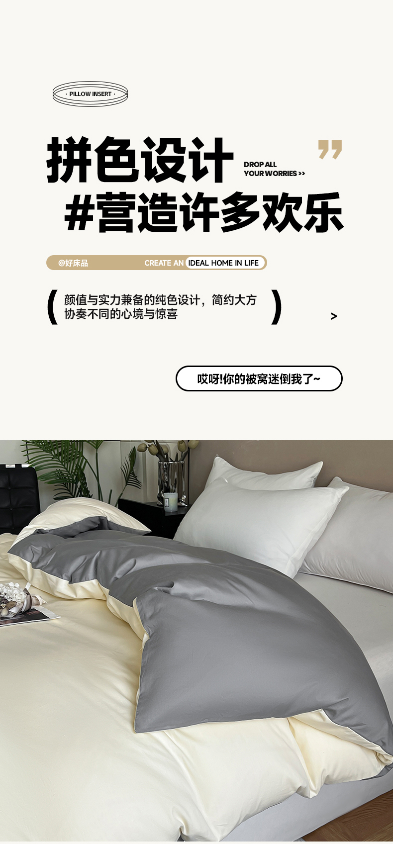 商品名称:澳梵2024新款60s全棉纯色单品被套 奶昔白-椰子灰