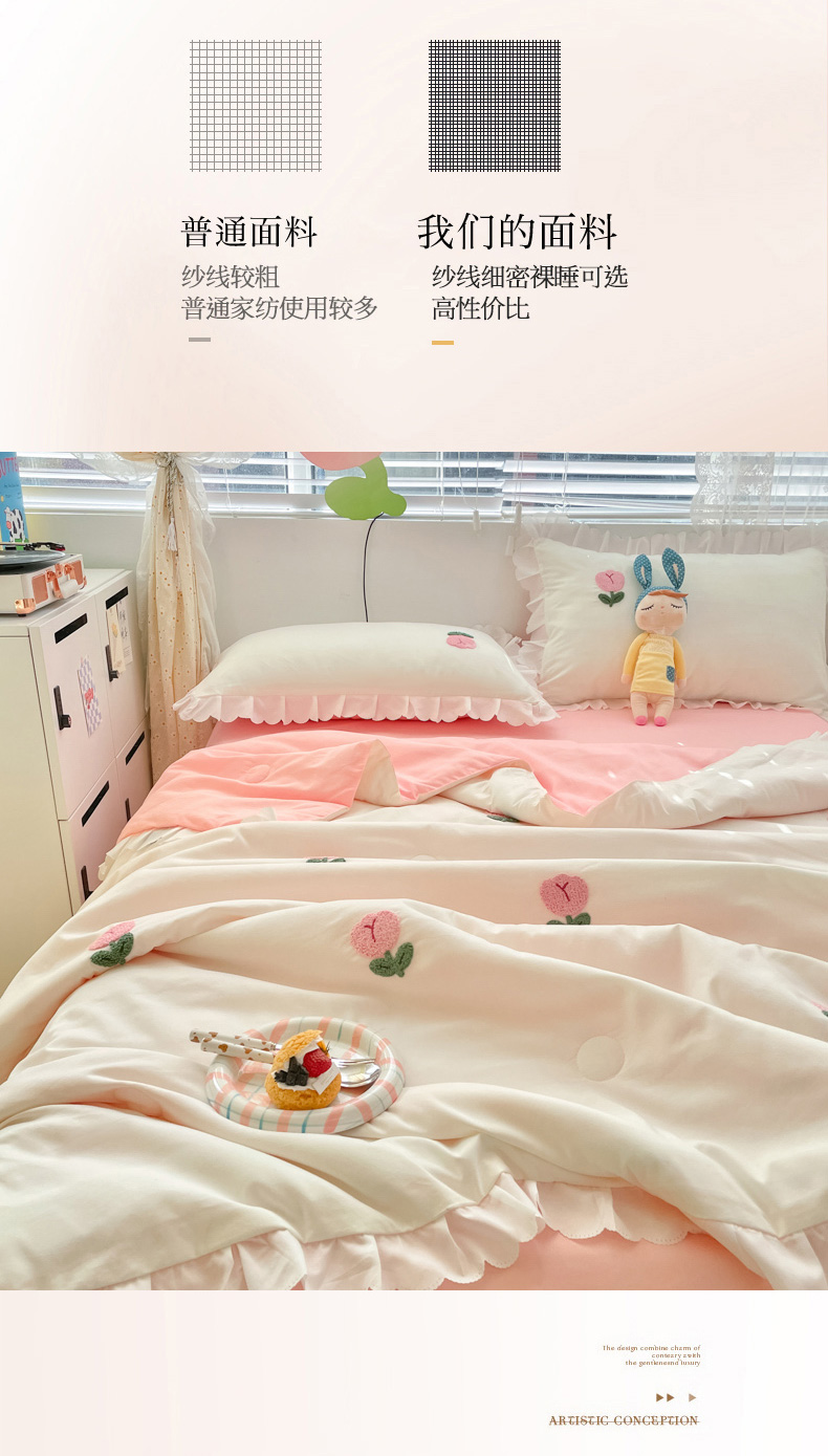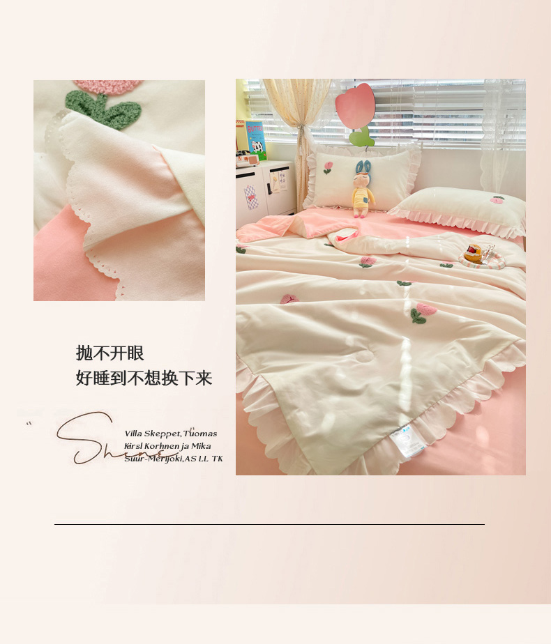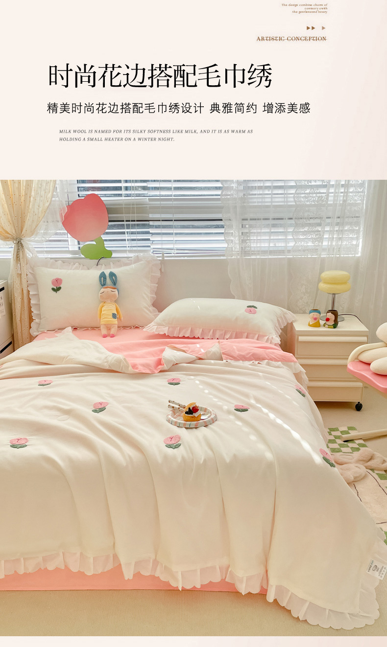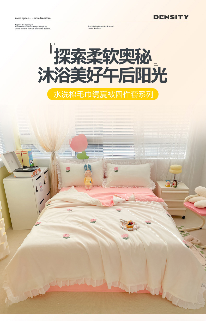 沐慕 2024新款毛巾绣印花夏被四件套 郁金香-白