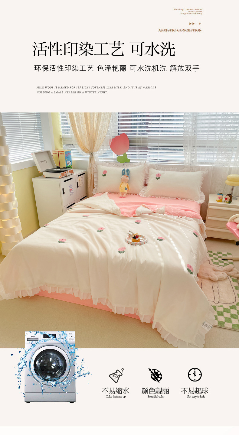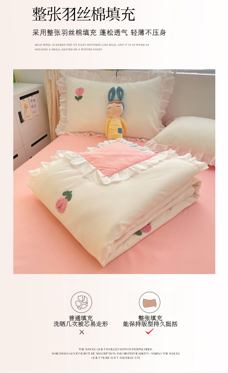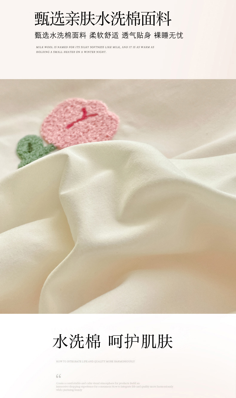 沐慕 2024新款毛巾绣印花夏被四件套 郁金香-白