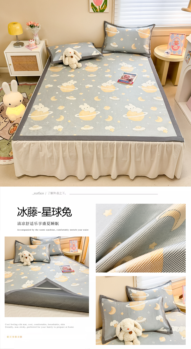 沐慕 2024新款小清新印花冰藤席空调席系列 冰藤-星球兔