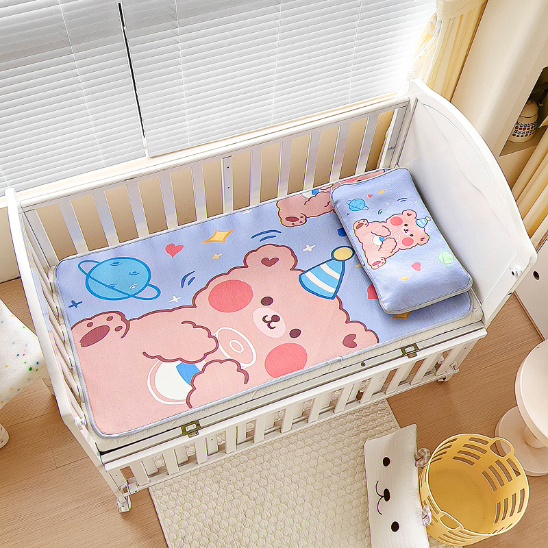 商品名称:宝晶枕芯2024新款A类冰丝印花儿童凉席两件套 可爱熊