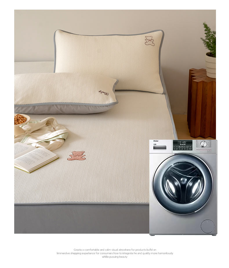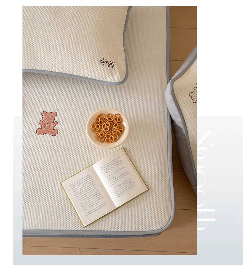 FORTWO家纺原创设计(FOR TWO家纺) 2024新款绣花凉席系列 开心小熊-奶昔白