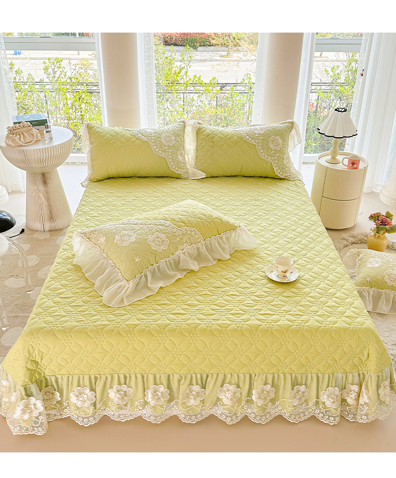 罗艺轩 2024新款公主风水洗棉全夹棉床盖款三件套-盛宴 盛宴-元气绿