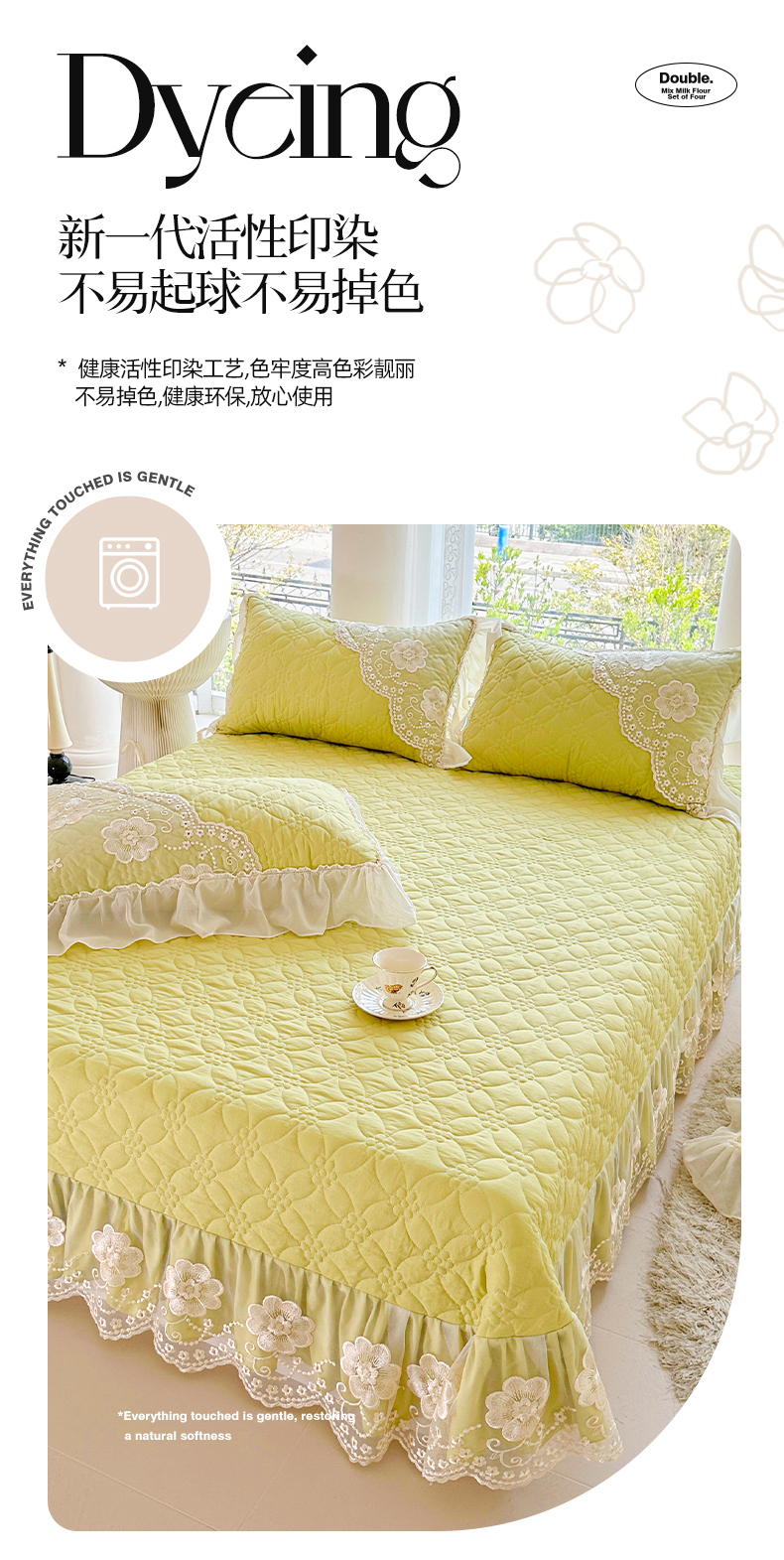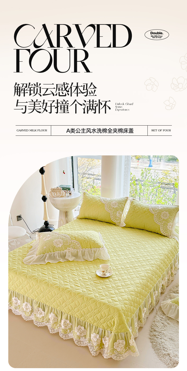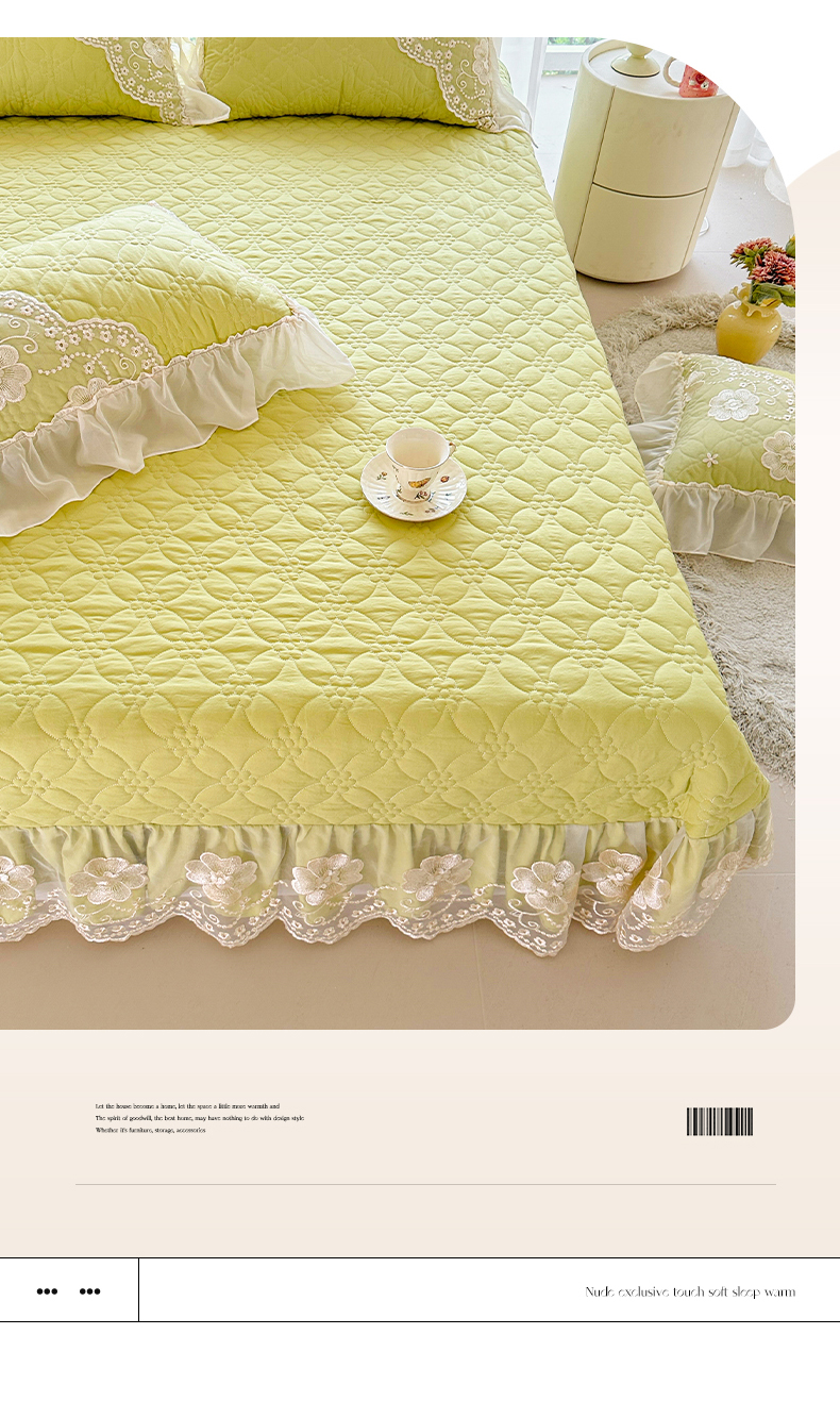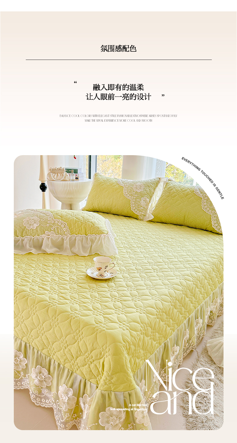 • 91家纺网 家纺一手货源 找家纺 罗艺轩 2024新款公主风水洗棉全夹棉床盖款三件套-盛宴 盛宴-元气绿