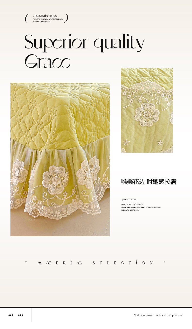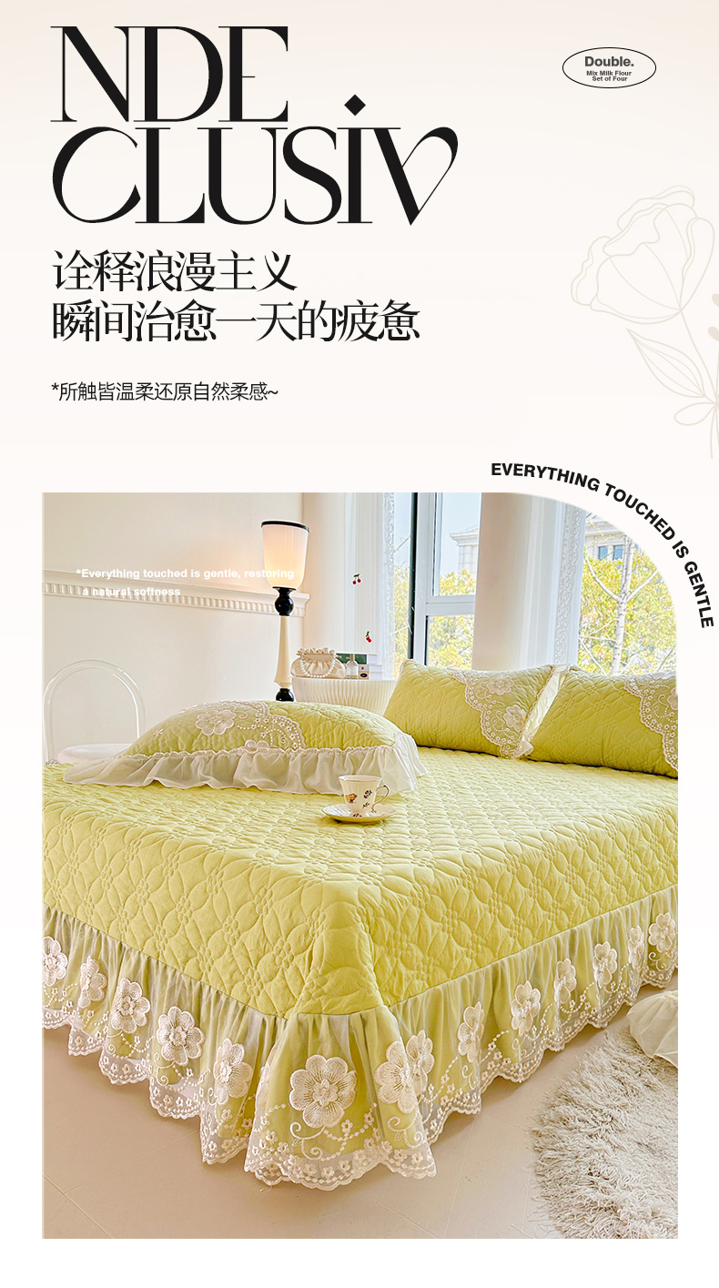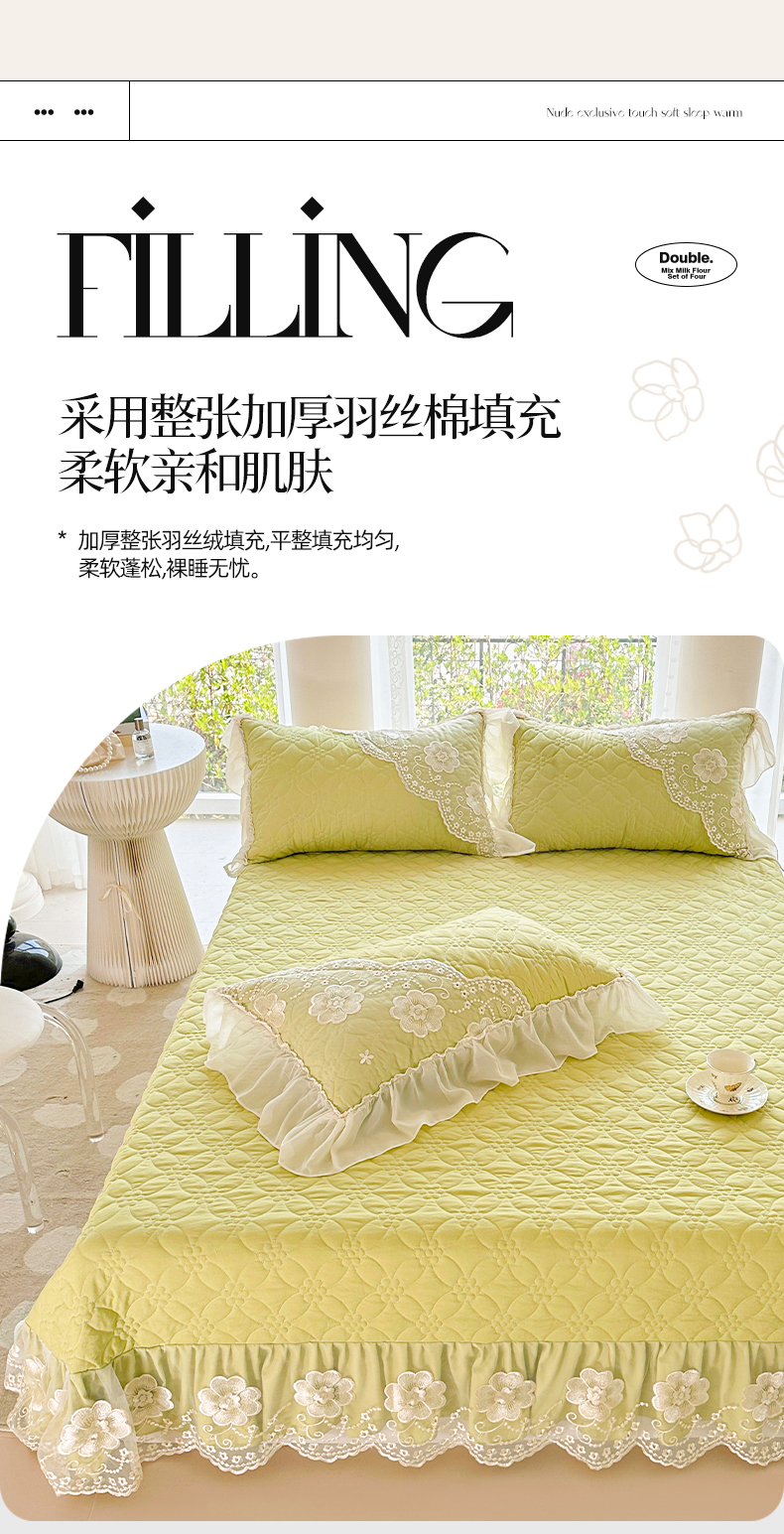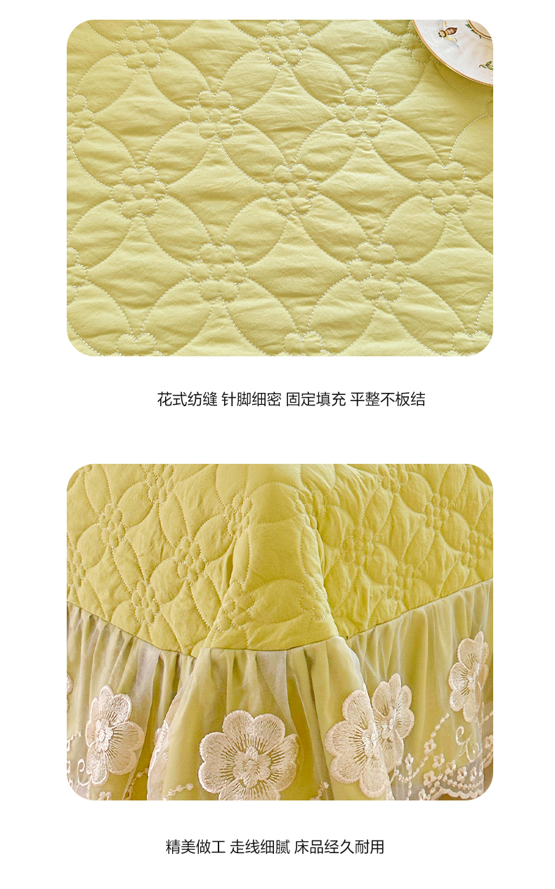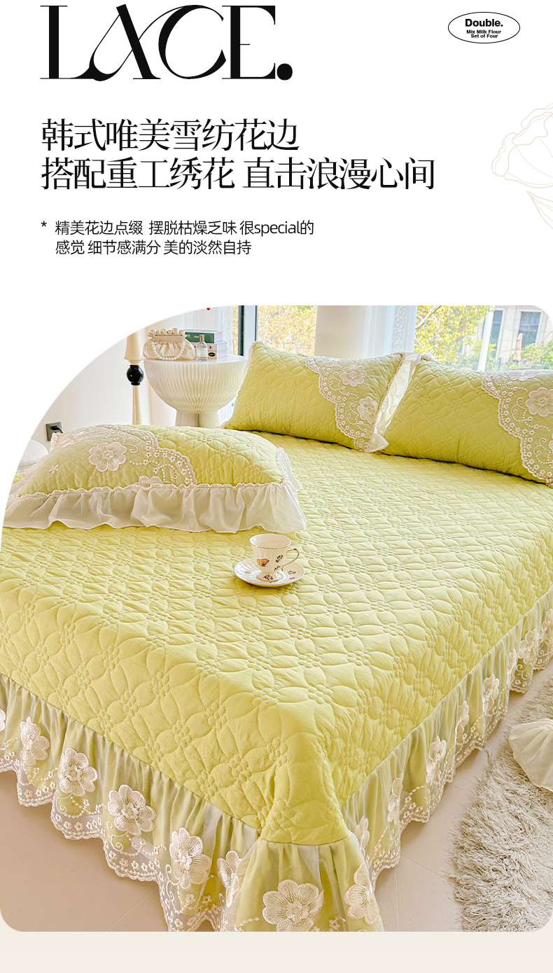 • 91家纺网 家纺一手货源 找家纺 罗艺轩 2024新款公主风水洗棉全夹棉床盖款三件套-盛宴 盛宴-元气绿