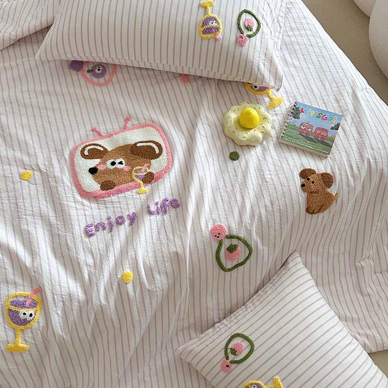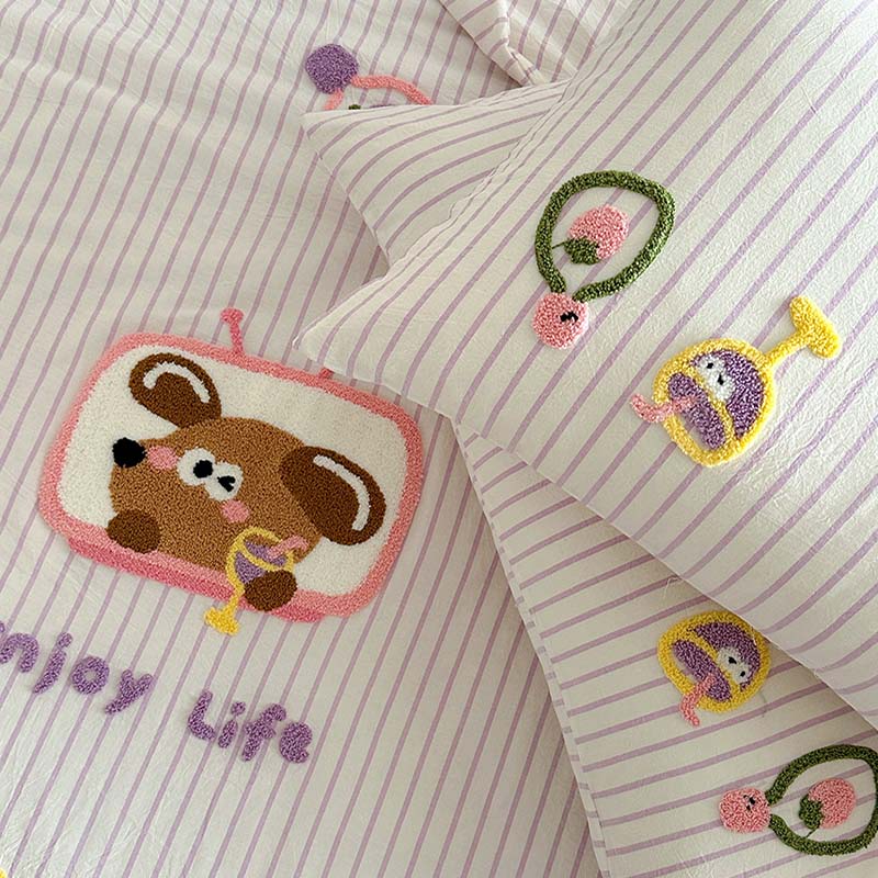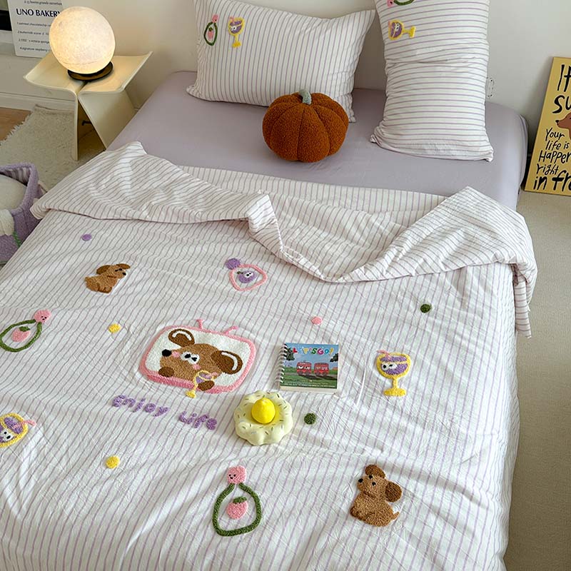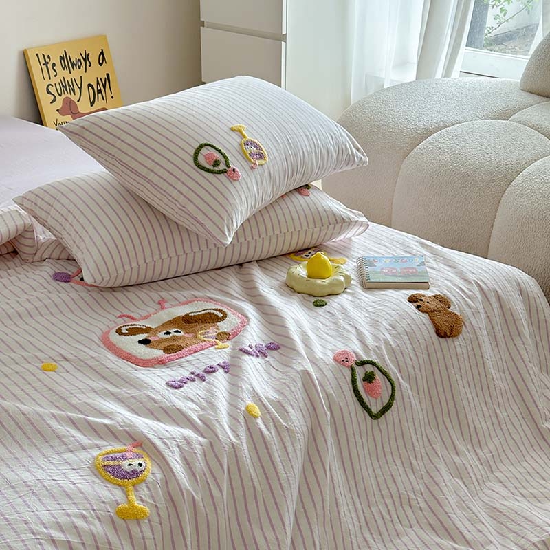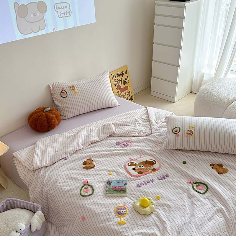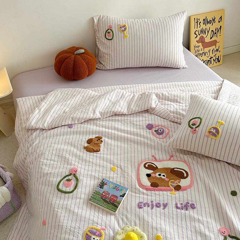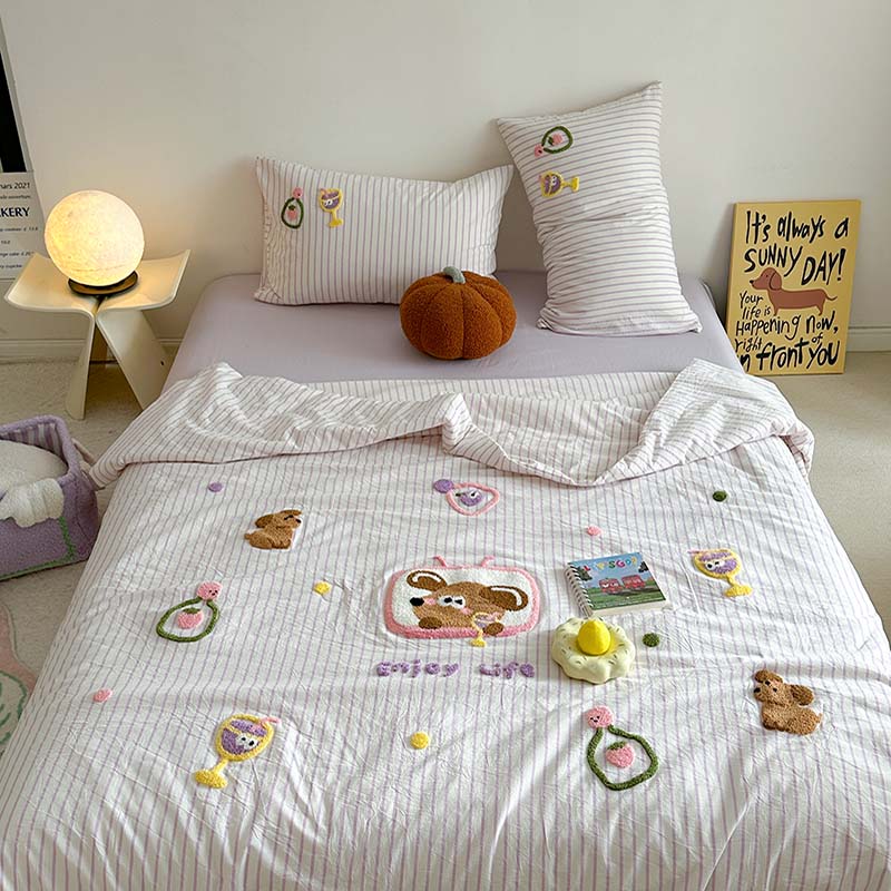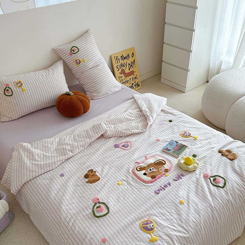 (总)柚子YOUTH 2025新款全棉纯棉工艺款13070贴布绣四件套,爱心小象,毛绒小狗,蘑菇女孩,星星法师