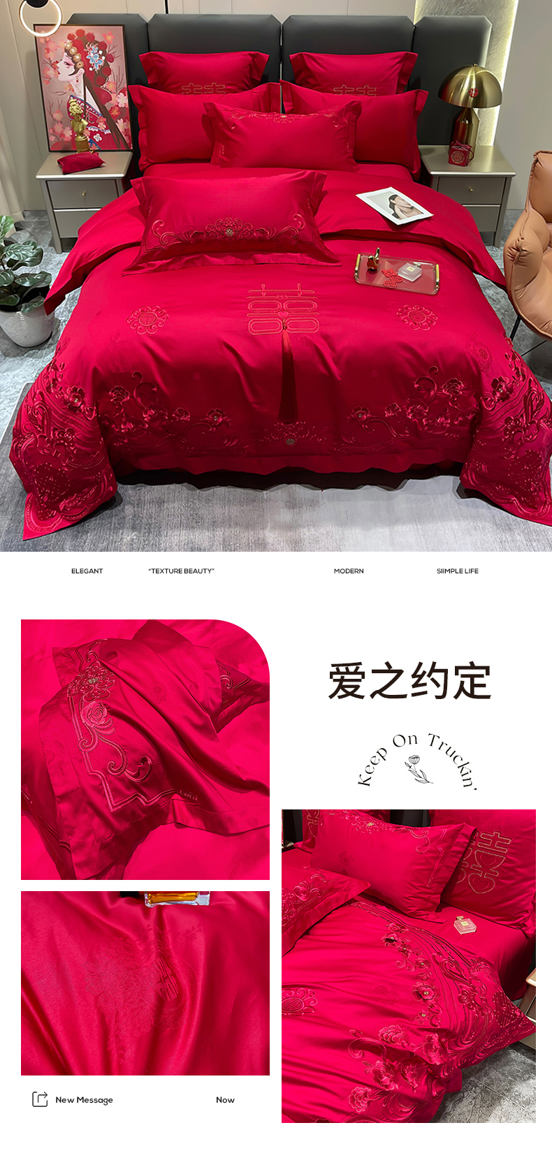 (总)卓缦家纺 2025新款提花刺绣婚庆四件套(控价50+),热情玫瑰,喜悦,永恒