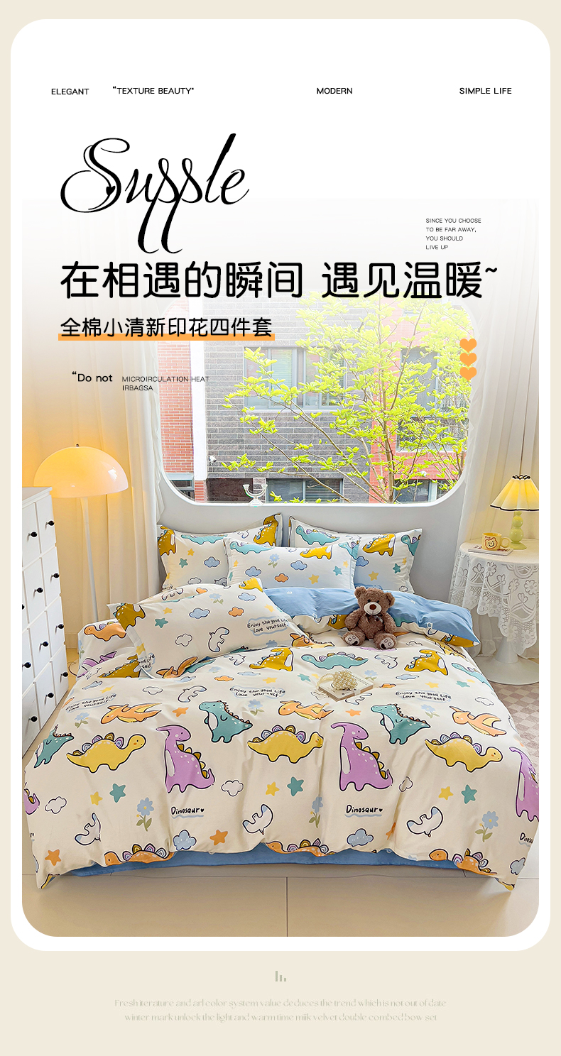 商品名称:优选良品 2025新款直播爆款全棉-ins印花系列四件套纯棉三件套床单床笠 飞龙世纪