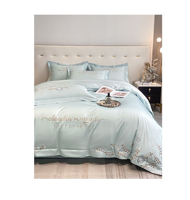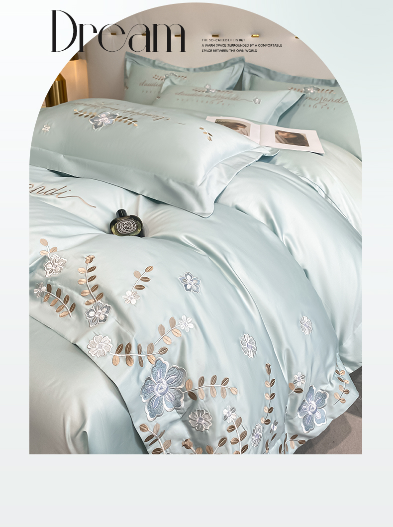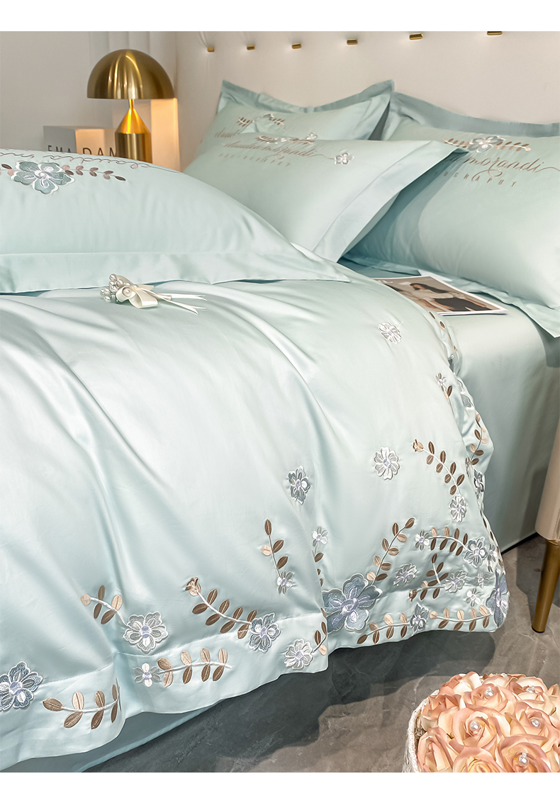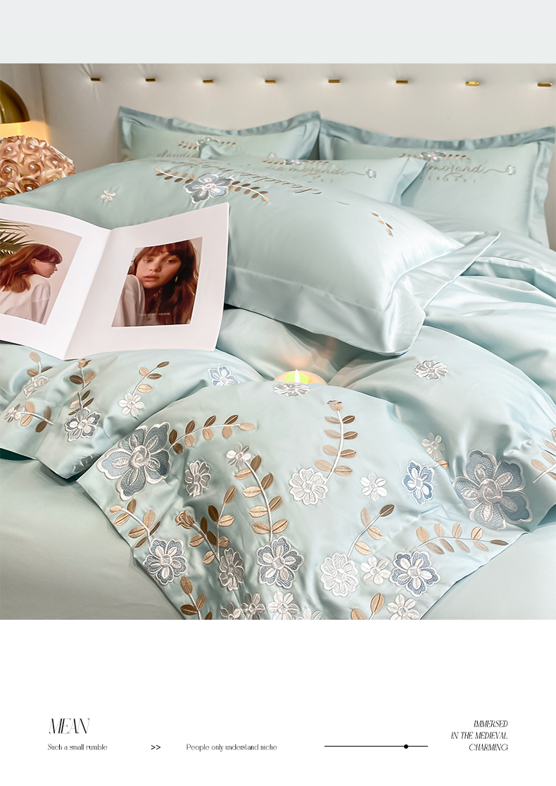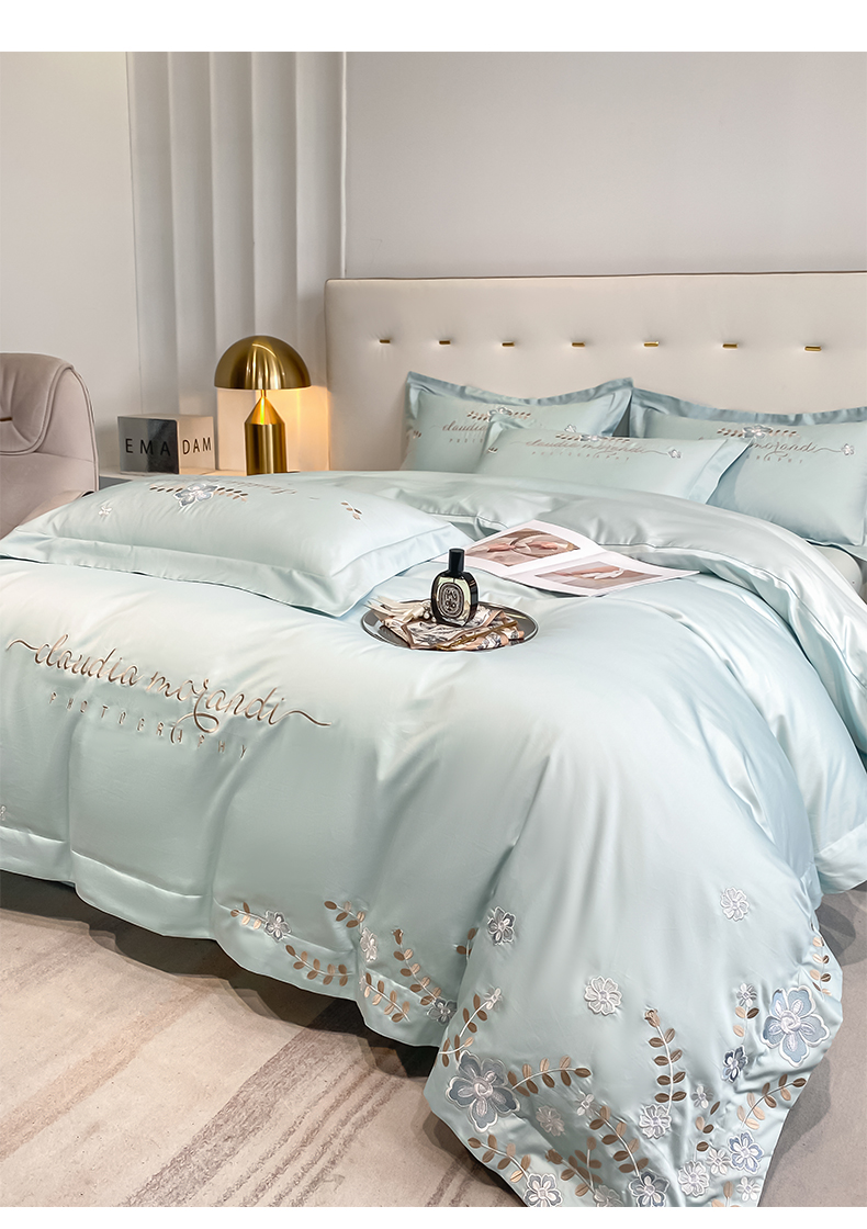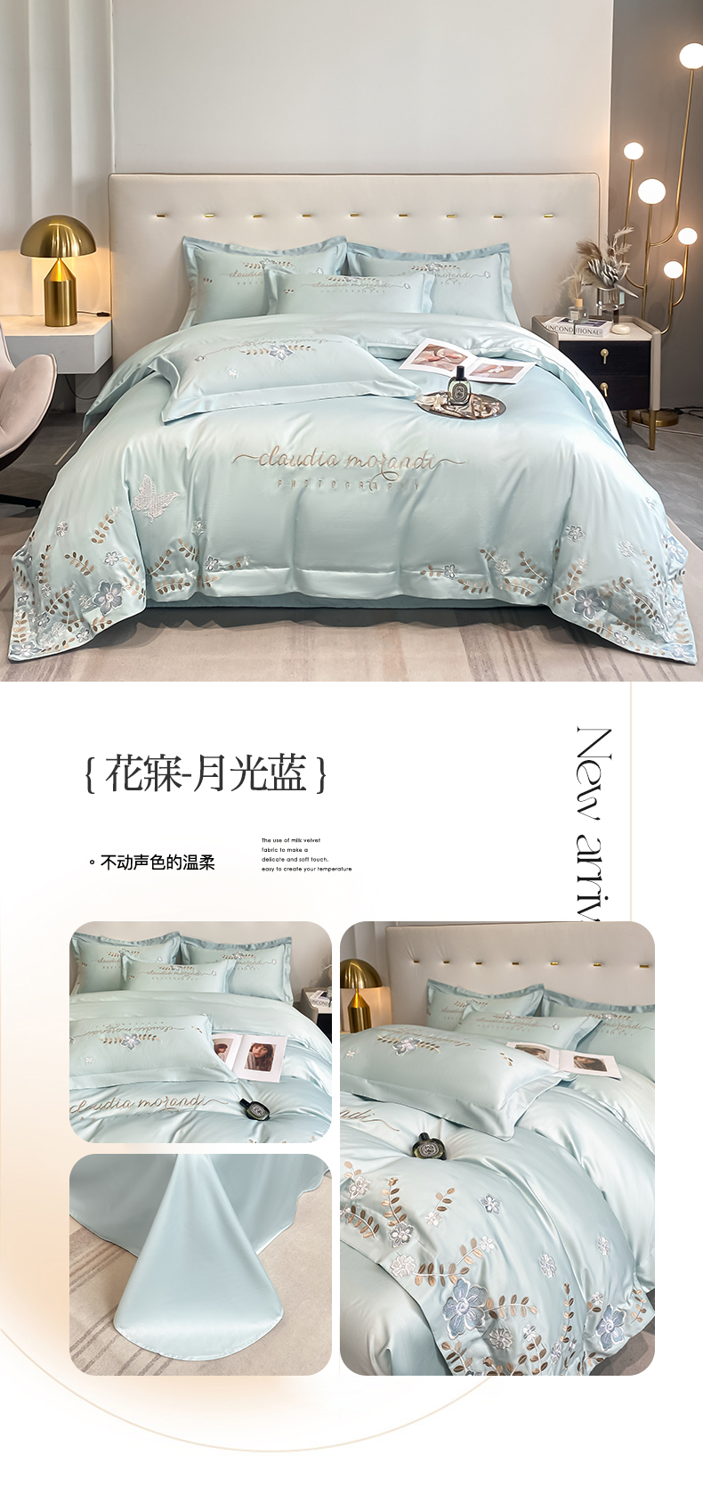 (总)欧乐蒂 2025新款欧式水洗贡缎全棉刺绣四件套-欧雅终版,宾利蓝,玉色,白色,粉色,豆沙,酒红,香槟,高级灰