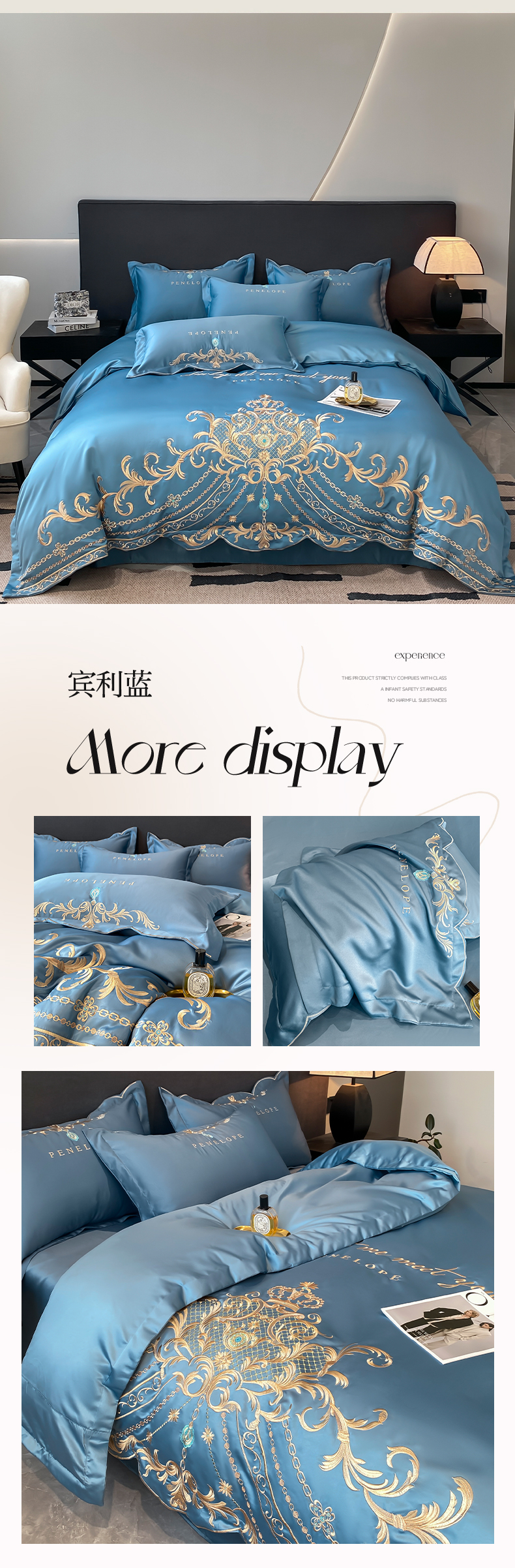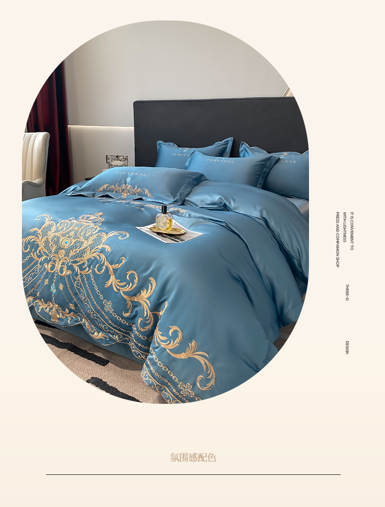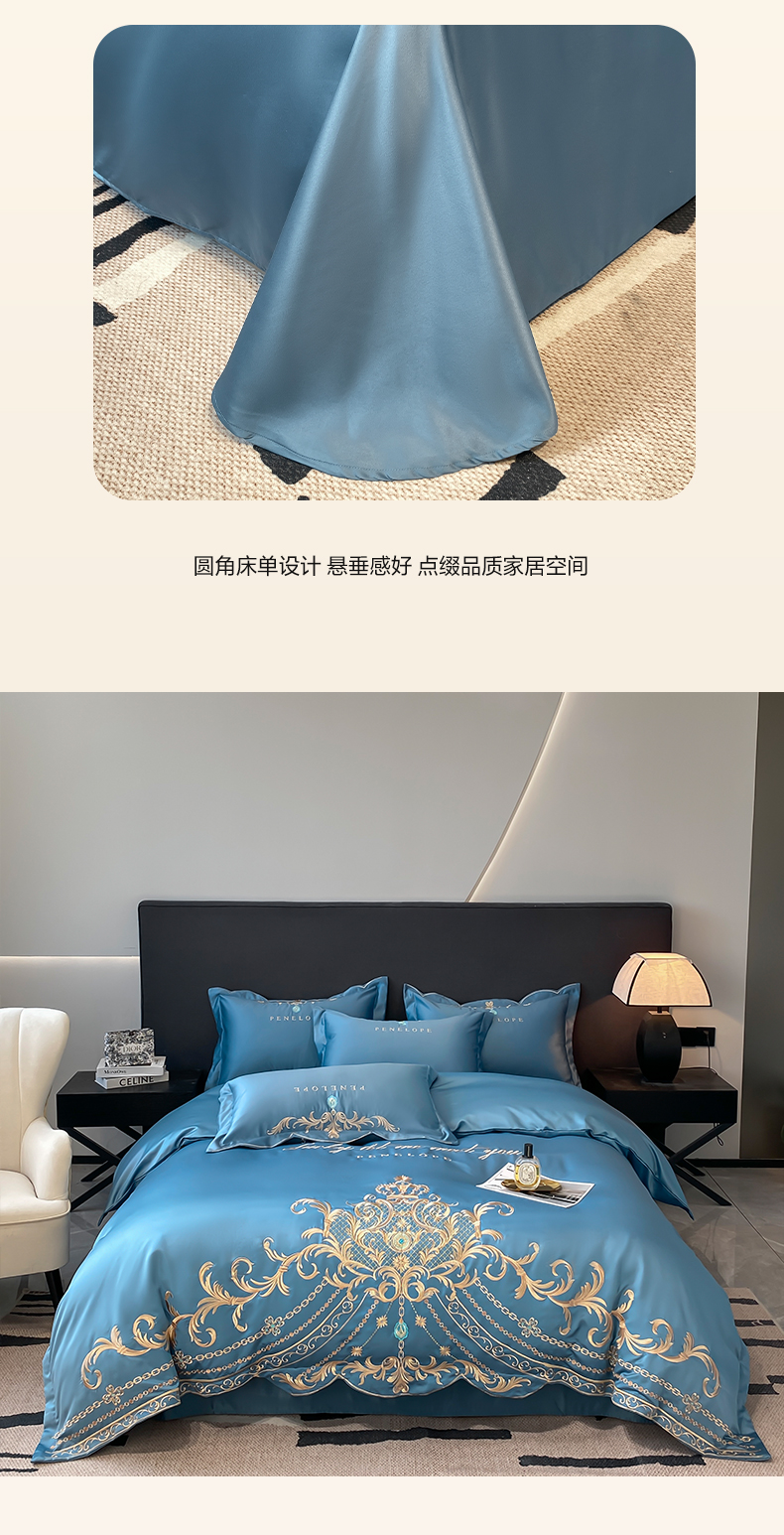 (总)欧乐蒂 2025新款欧式水洗贡缎全棉刺绣四件套-欧雅终版,宾利蓝,玉色,白色,粉色,豆沙,酒红,香槟,高级灰