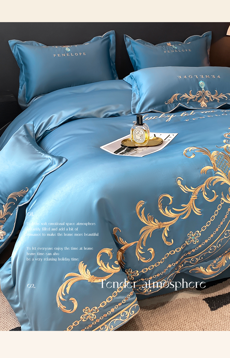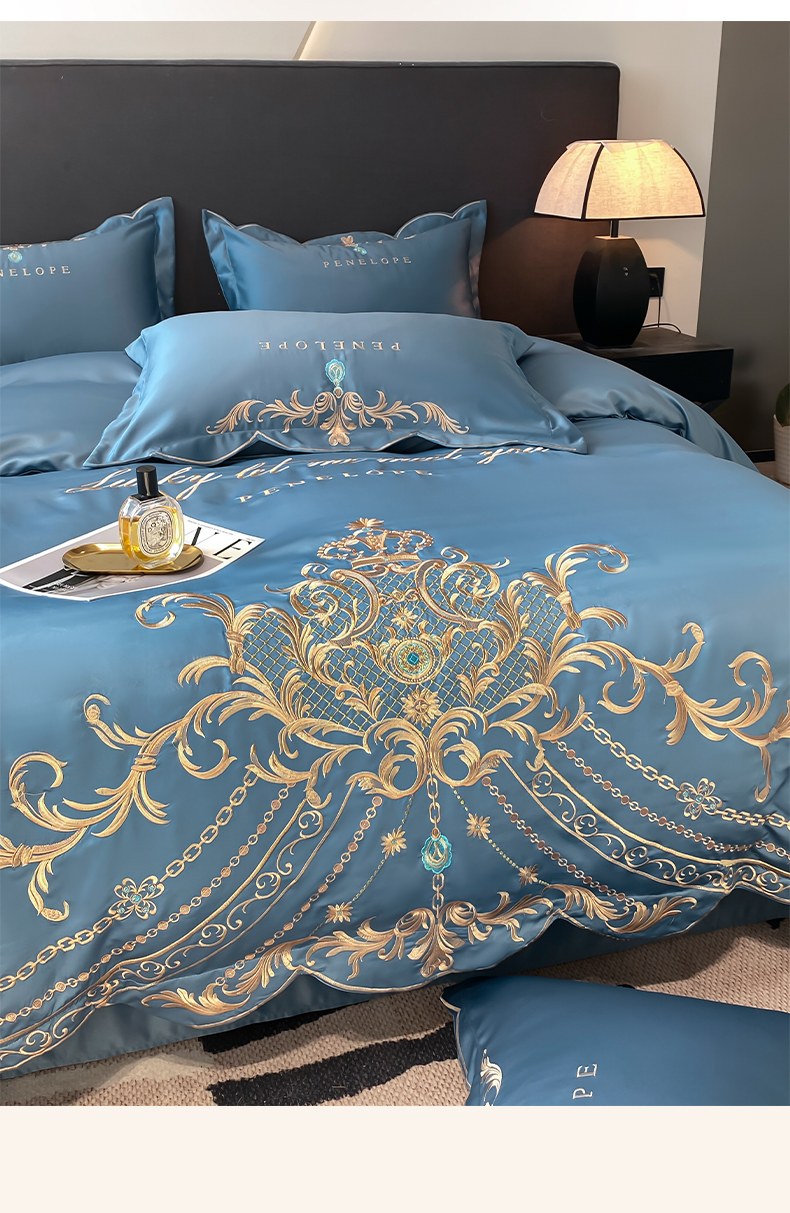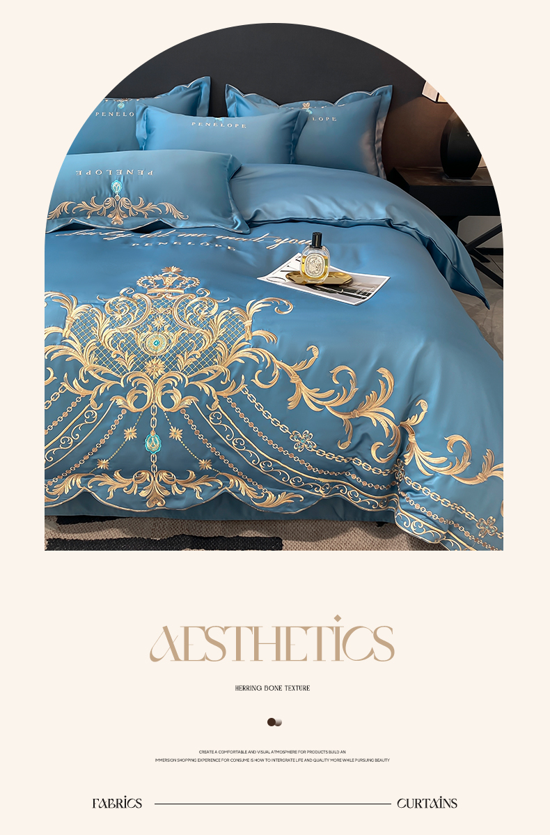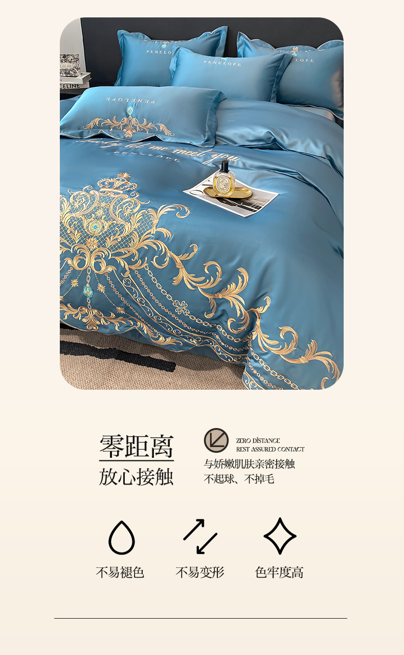 (总)欧乐蒂 2025新款欧式水洗贡缎全棉刺绣四件套-欧雅终版,宾利蓝,玉色,白色,粉色,豆沙,酒红,香槟,高级灰