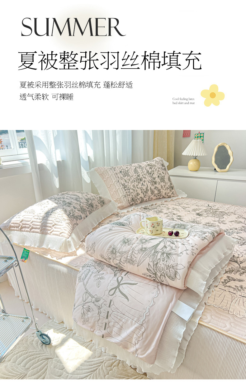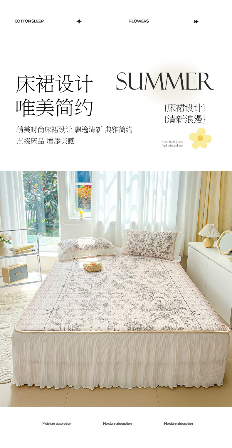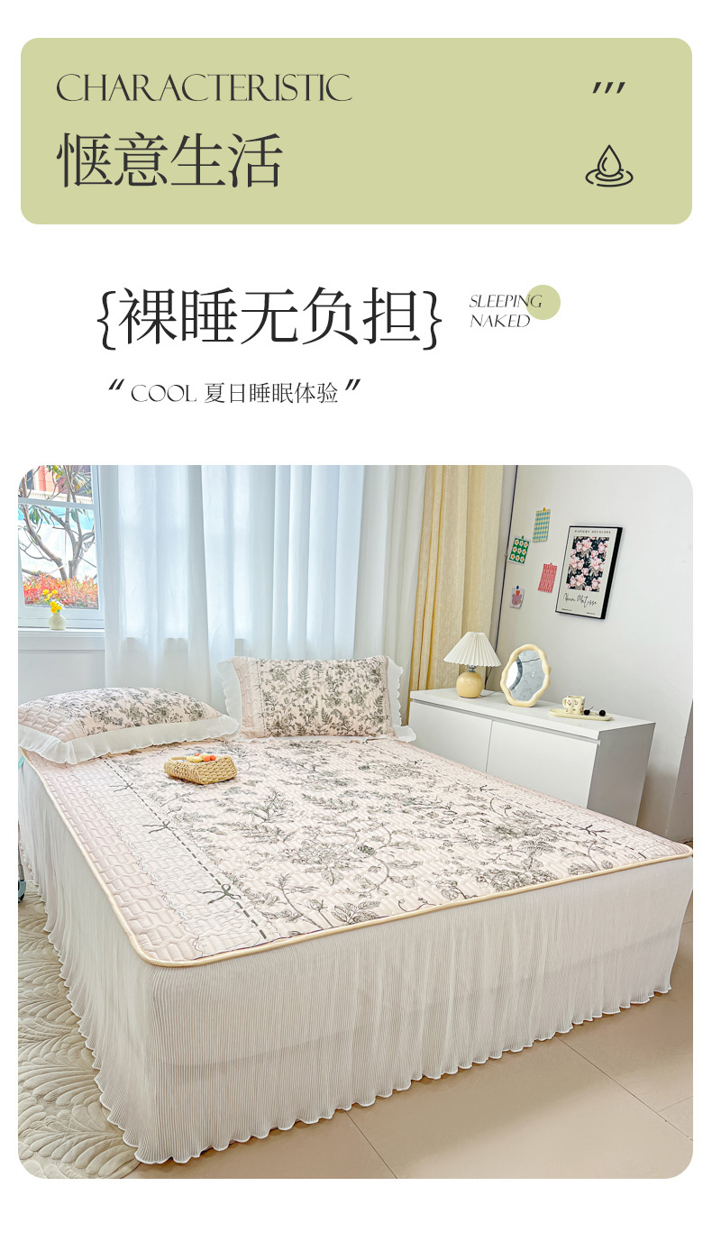 慕澄家纺 2024新款大版印花床裙款乳胶凉席-凉席三件套 格蕾丝