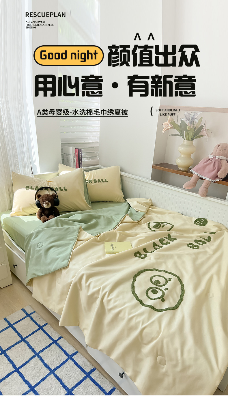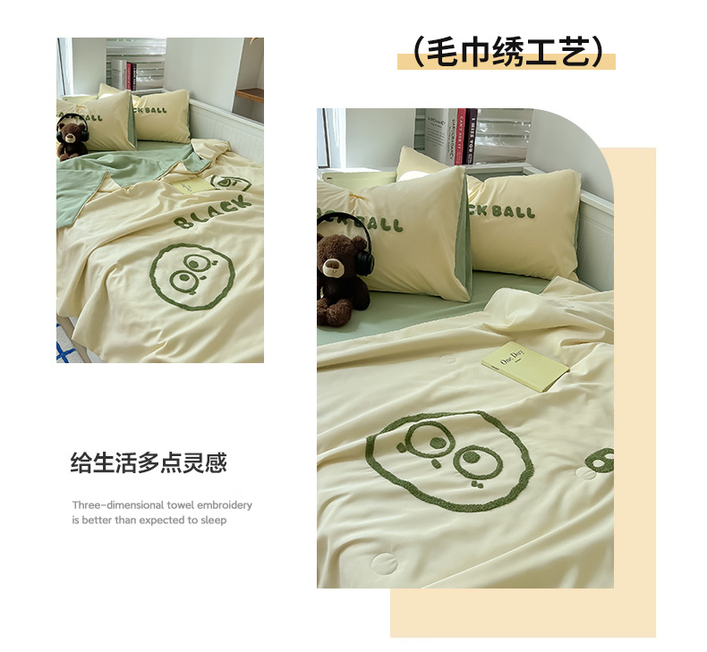 当前位置: 91家纺网 > 商品网购 > 床品套件 > 四件套 > 夏被四件套 > 眠帛家居 2024新款水洗棉毛巾绣夏被四件套精灵系列A类风格二 精灵奶黄-果绿