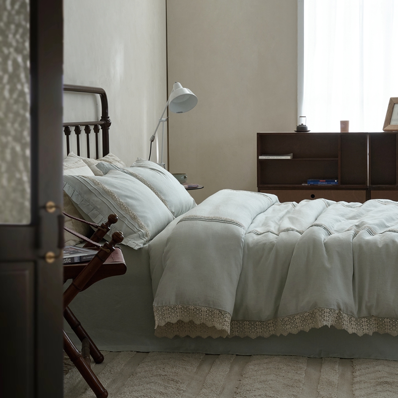 当前位置: 91家纺网 > 商品网购 > 床品套件 > 四件套 > 其它四件套 > 子和家居 2024新款天丝棉麻四件套-浅语 浅语-薄荷奶糖(绿)
