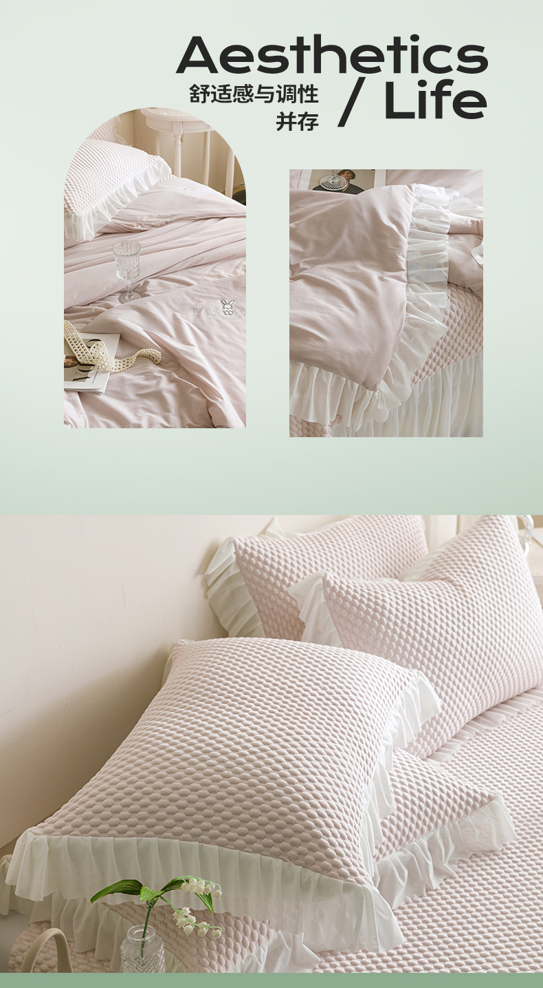 (总)婳庭家居 2025新款双层纱褶皱花边款四件套,春野来信,繁梦,玫瑰故事,清秋,云上,紫萱