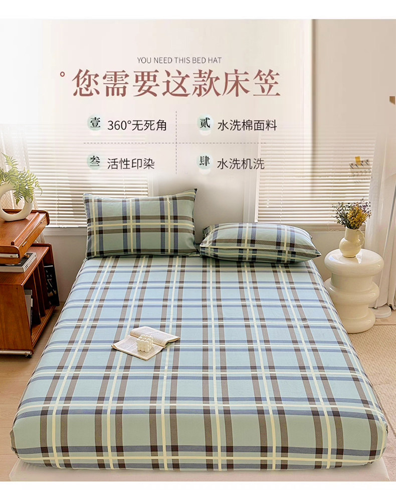 • 91家纺网 家纺一手货源 找家纺 家贝爱 2024新款3倍加厚水洗棉床笠床单 遇见绿