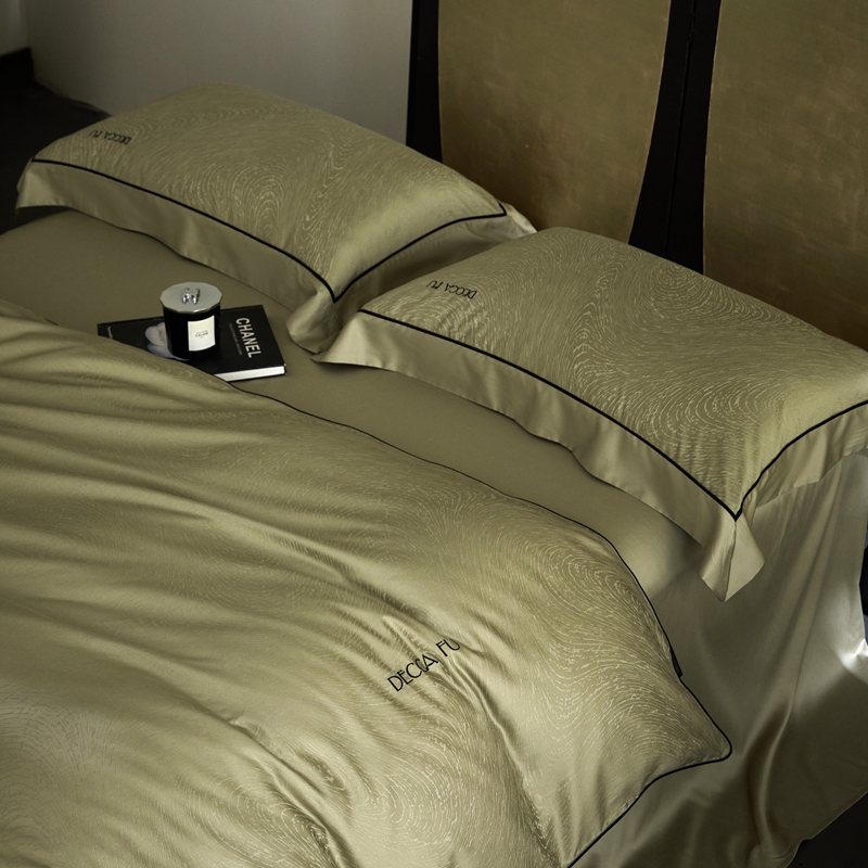 安莱生活 2024新款60S天丝棉提花四件套三系列(银丝款)--天丝棉铂金商务款 牧云-香辰绿