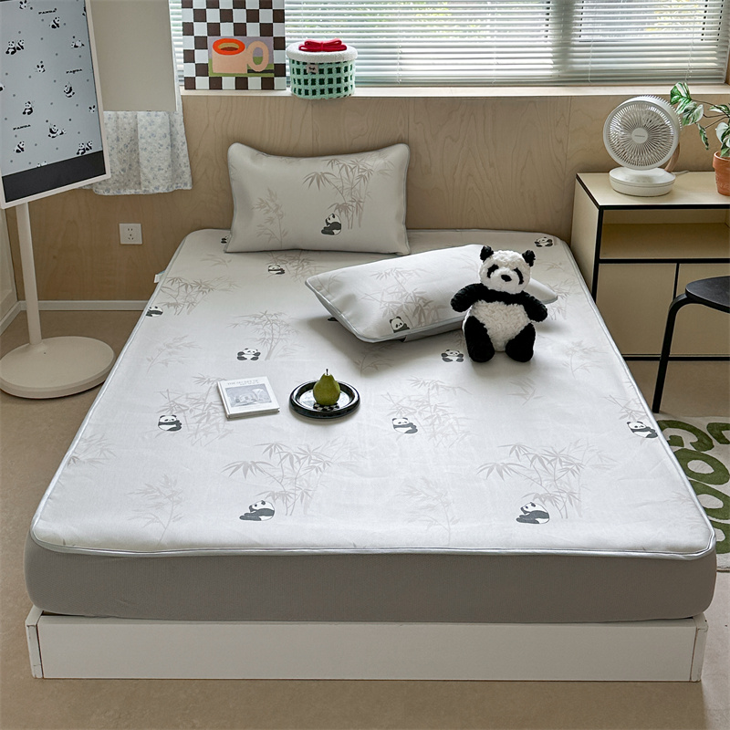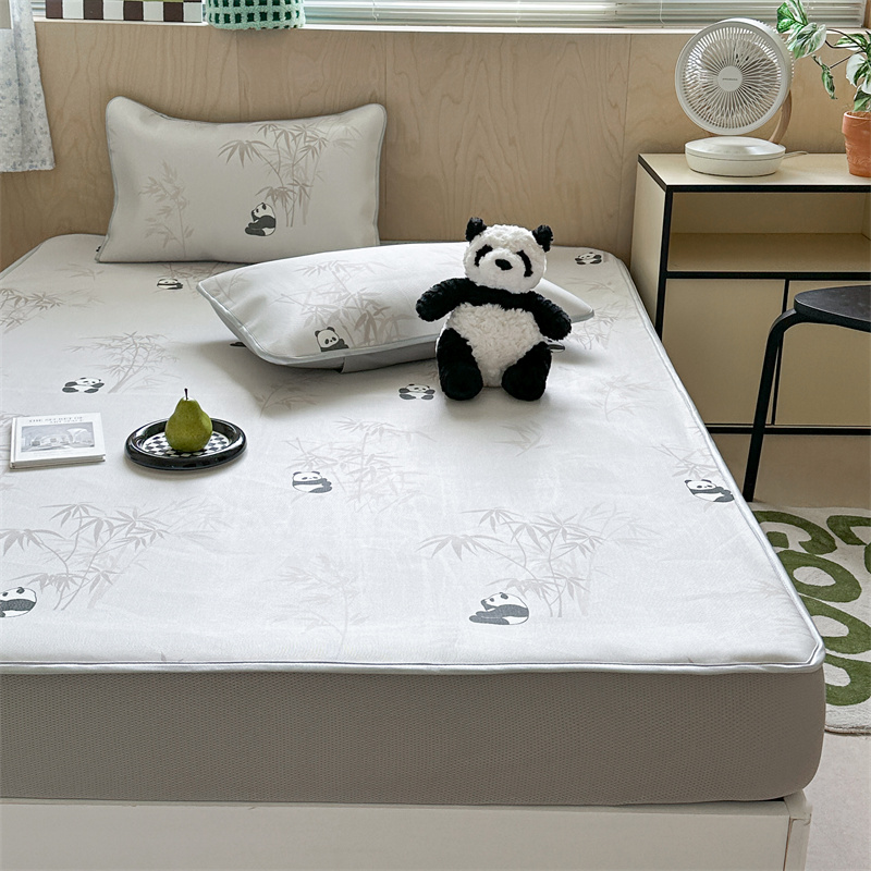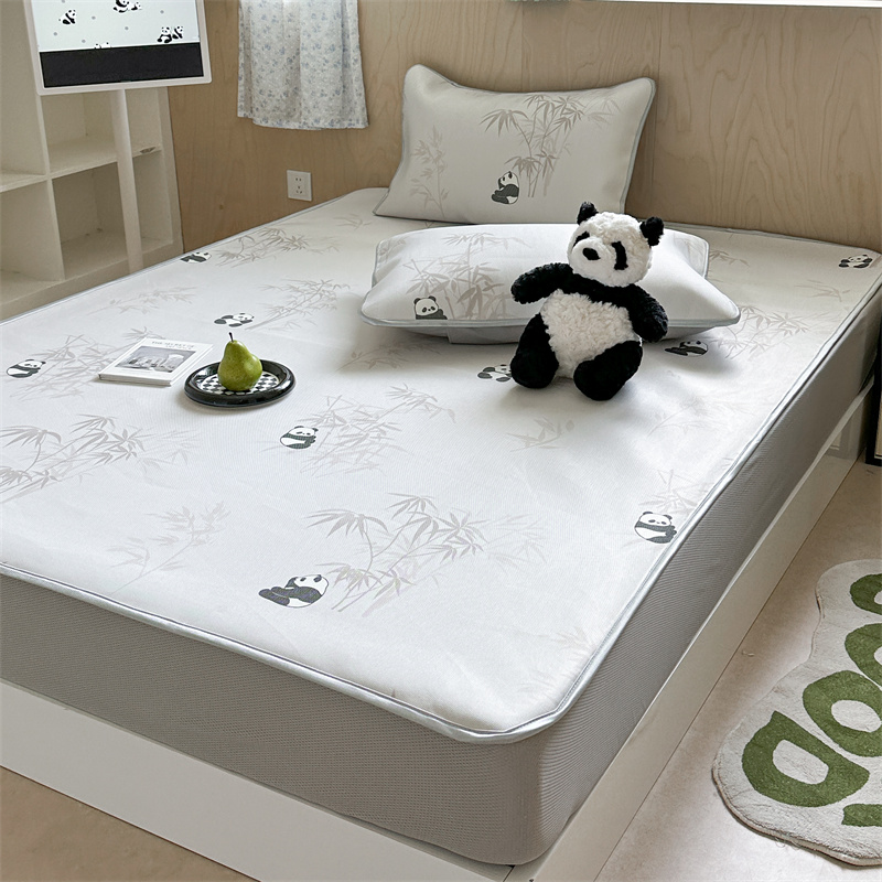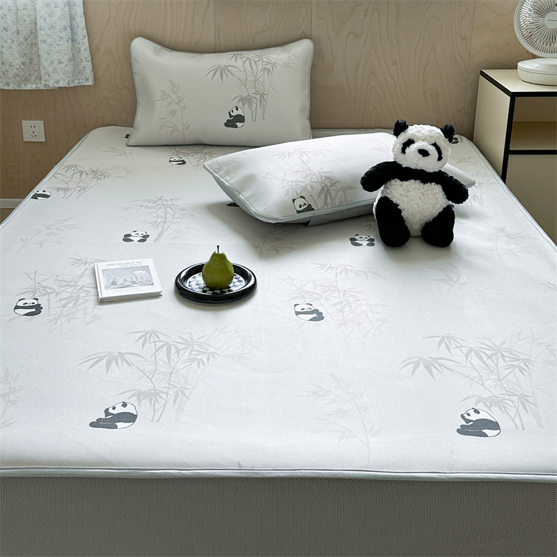 商品名称:柚子YOUTH 2024新款中国风高端养生900D竹子熊猫冰丝凉席 竹子熊猫灰床笠款