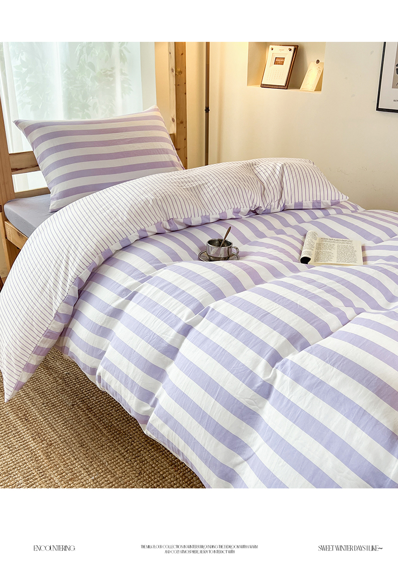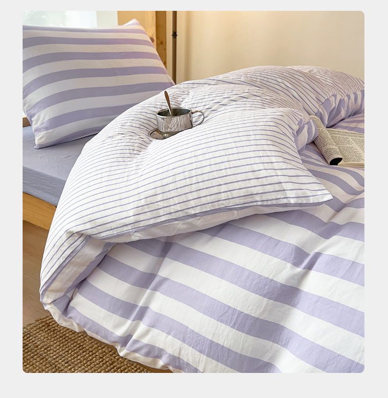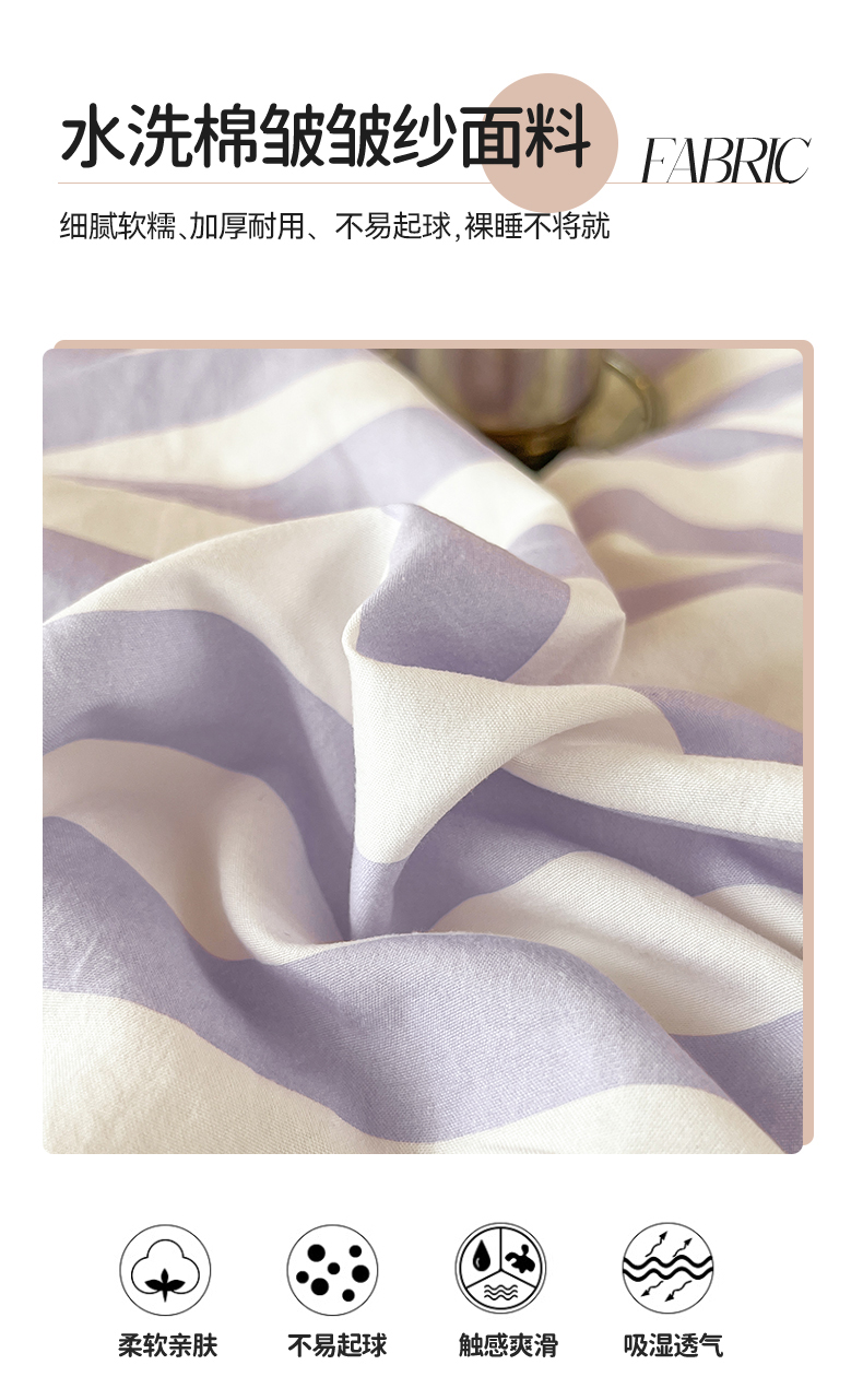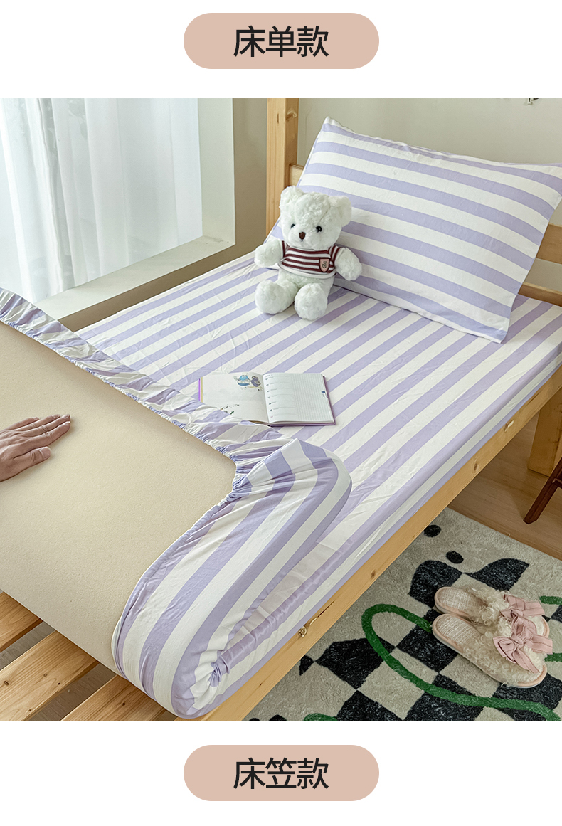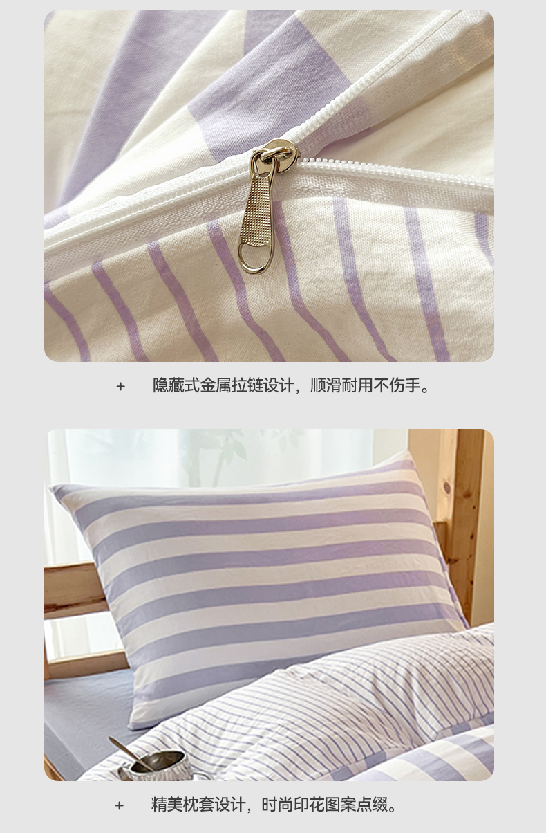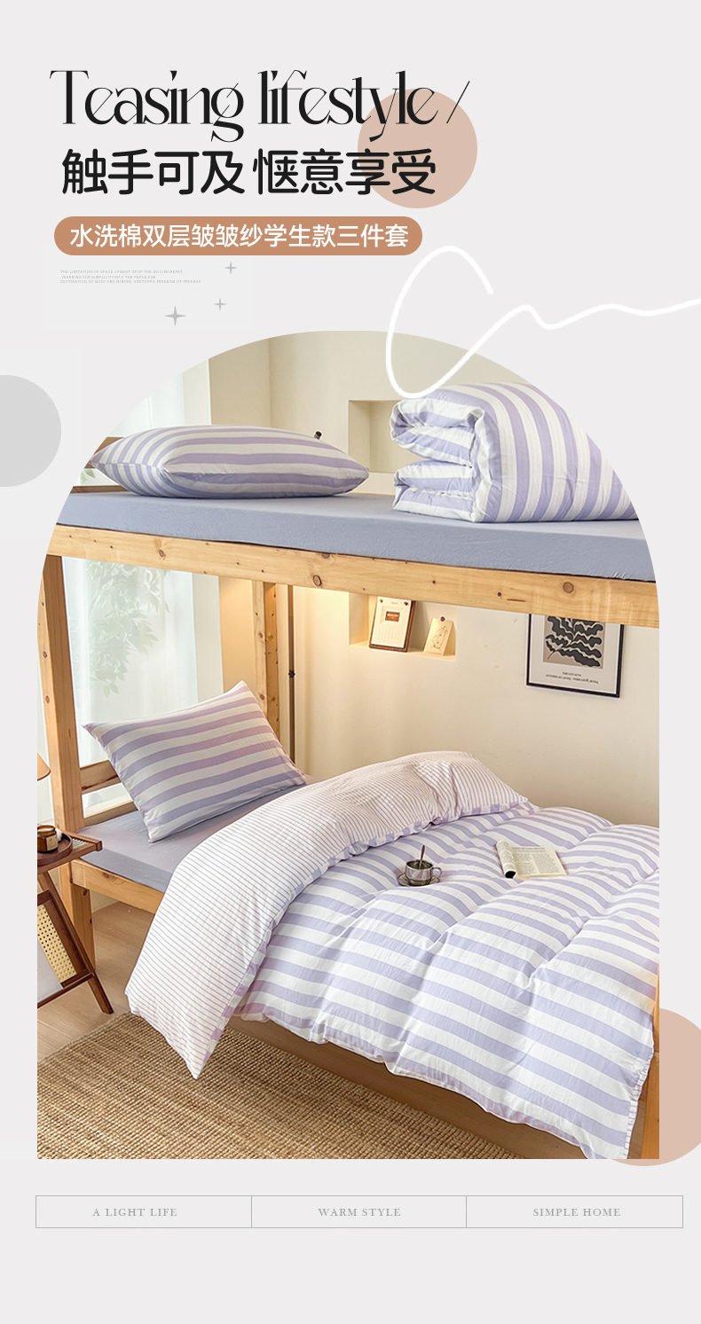 当前位置: 91家纺网 > 商品网购 > 床品套件 > 三件套 > 多品家纺 2024新款水洗棉皱皱纱双层纱学生三件套四件套 丁香紫条
