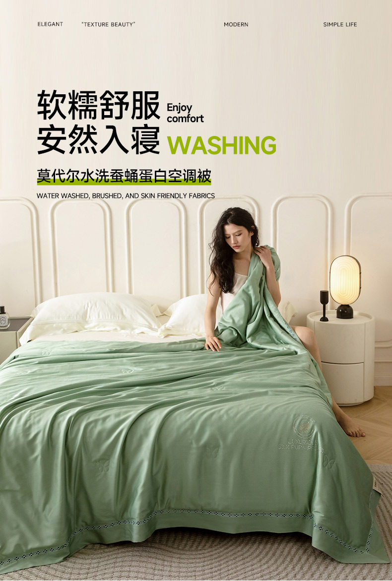被靠被 2024新款莫代尔蚕蛹蛋白夏被空调被-悠闲时光 悠闲时光-竹绿