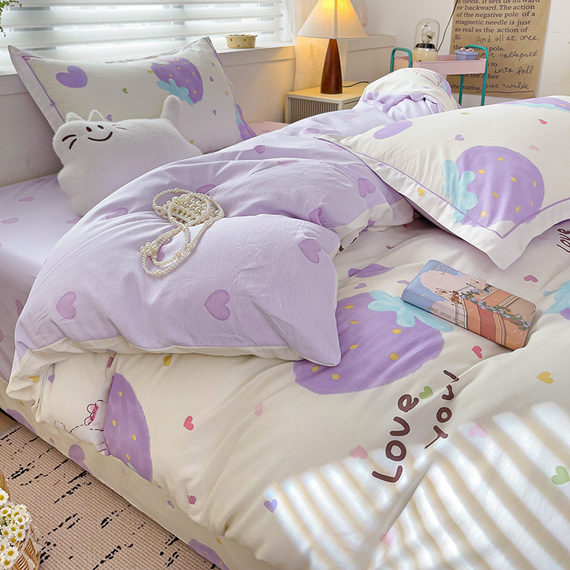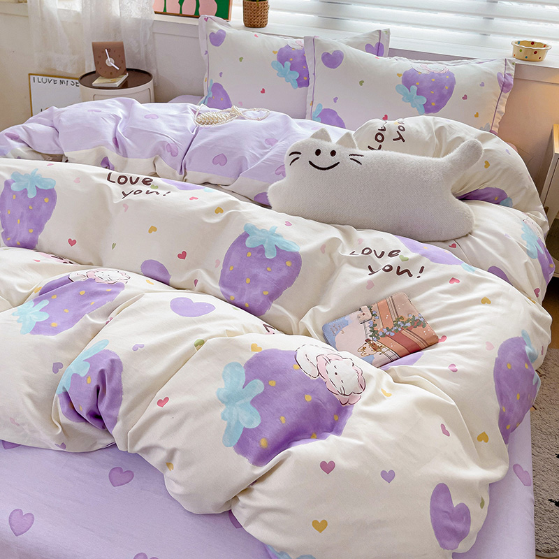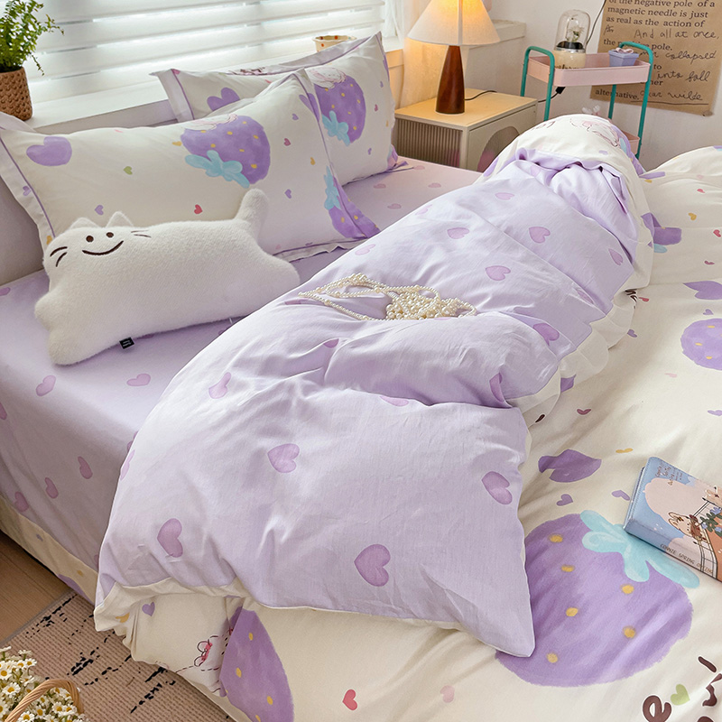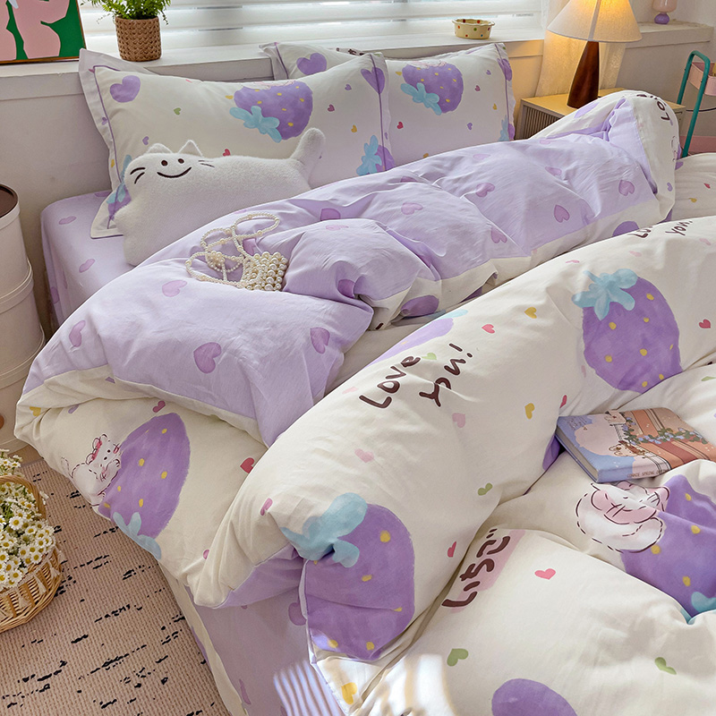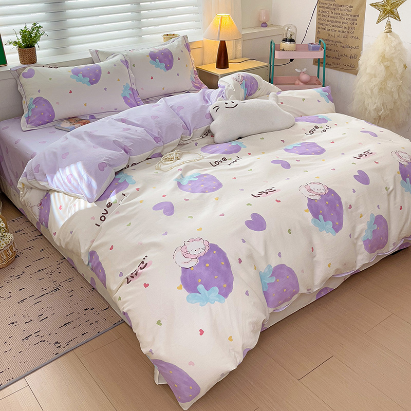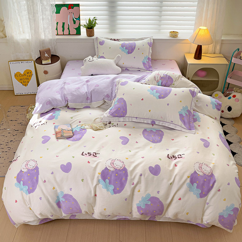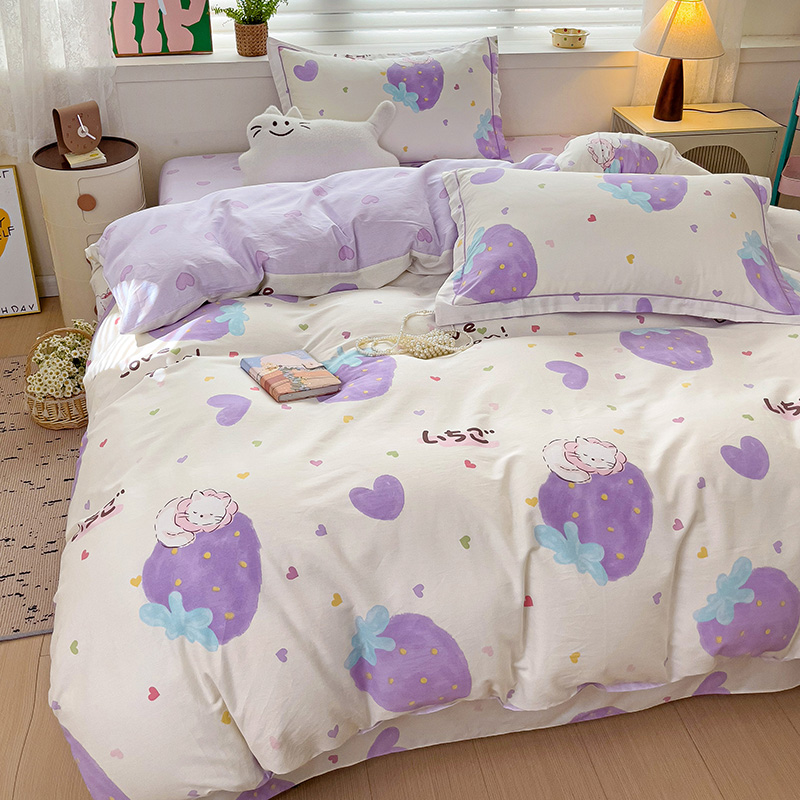 2024新款13372纯棉大版印+绣小清新款四件套 草莓之恋,草莓之恋