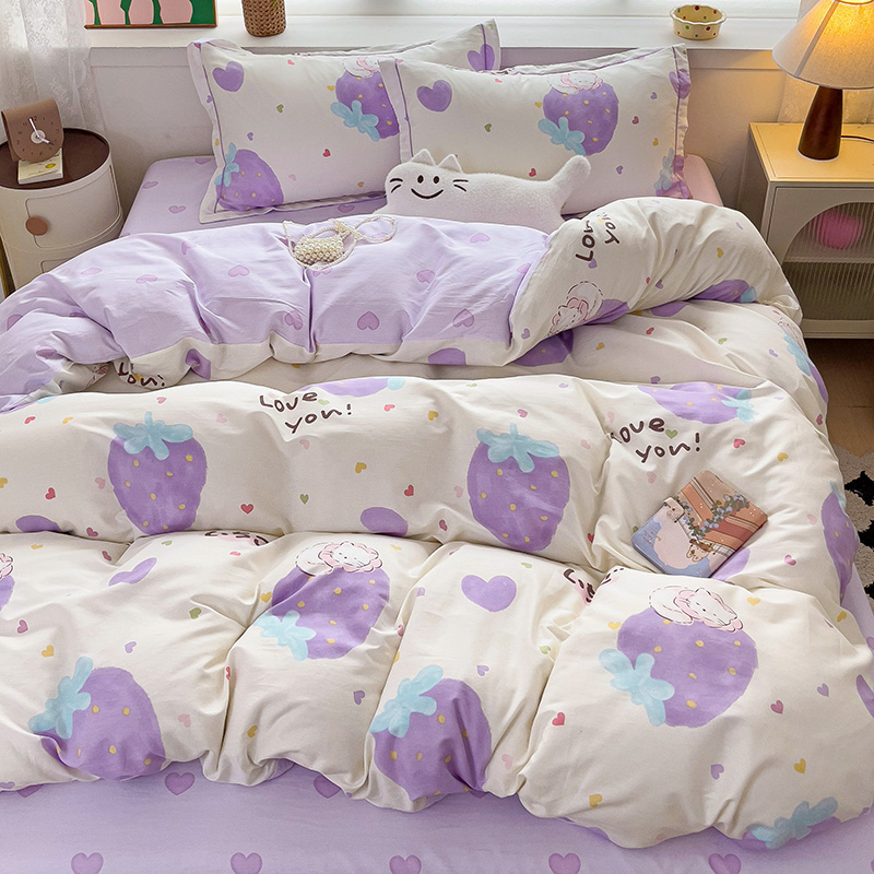 (总)2024新款13372纯棉大版印+绣小清新款四件套,葡萄花束,你好彼得,草莓之恋