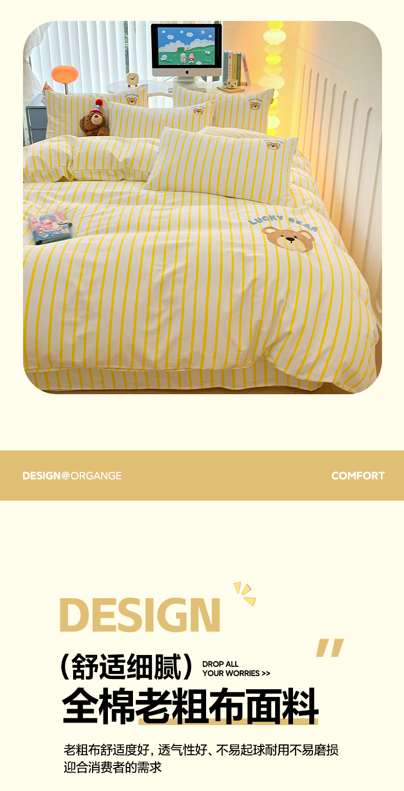 当前位置: 91家纺网 > 商品网购 > 床品套件 > 四件套 > 全棉普通四件套 > 雅居纺 2024新款全棉绣花老粗布单被套四件套 幸运熊