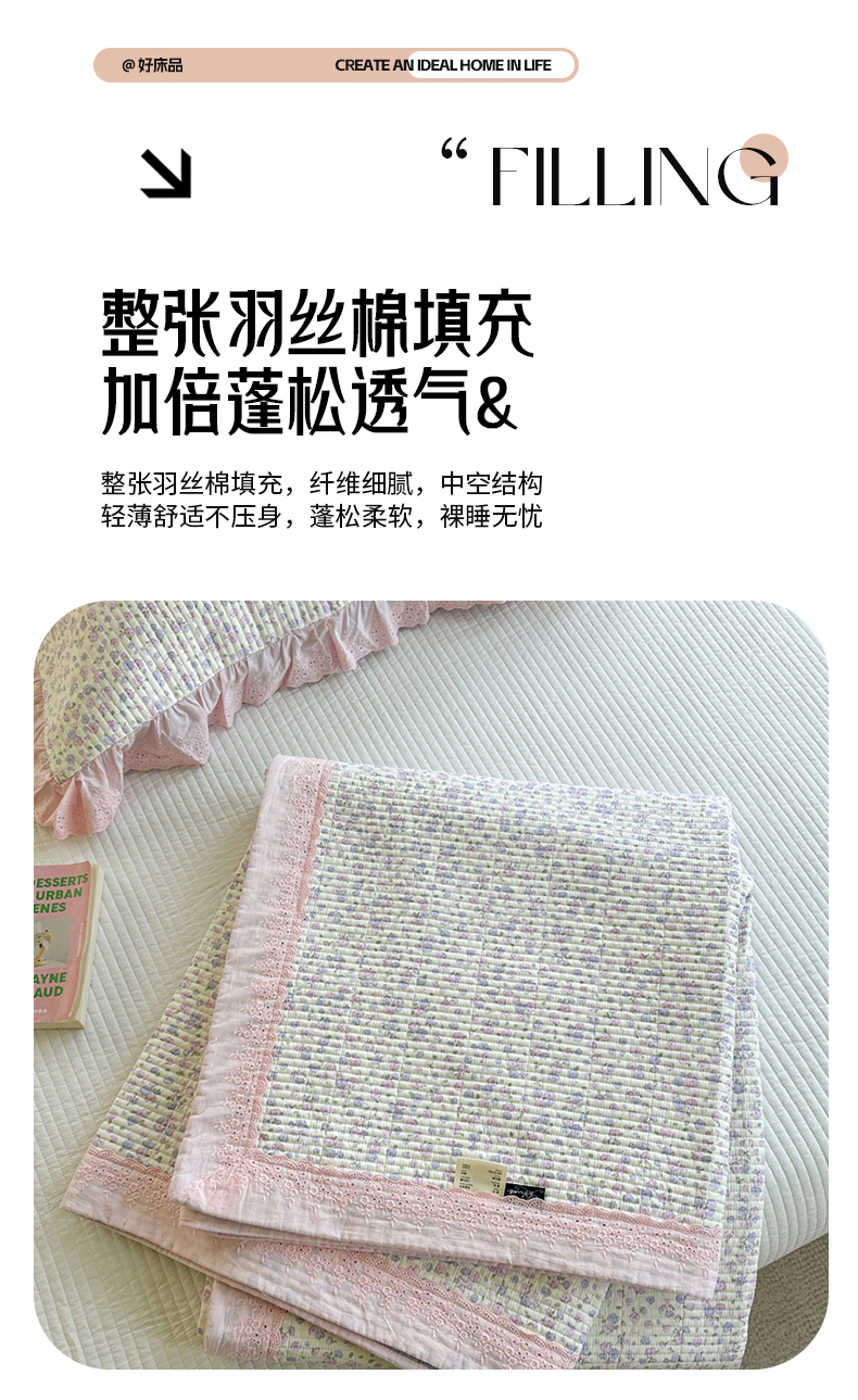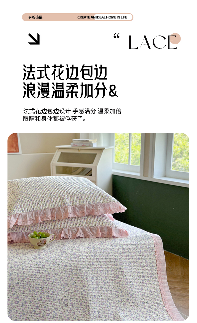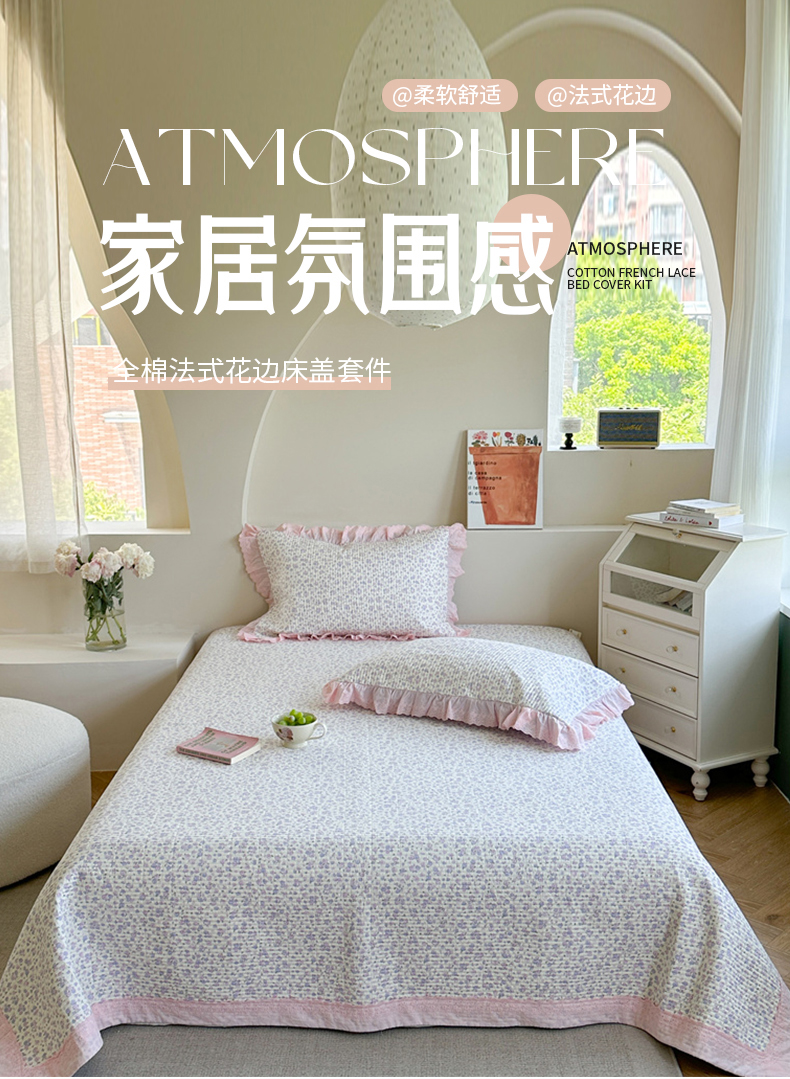 商品名称:诗黛尔 2024秋冬新款全棉法式花边床盖套件 花悦