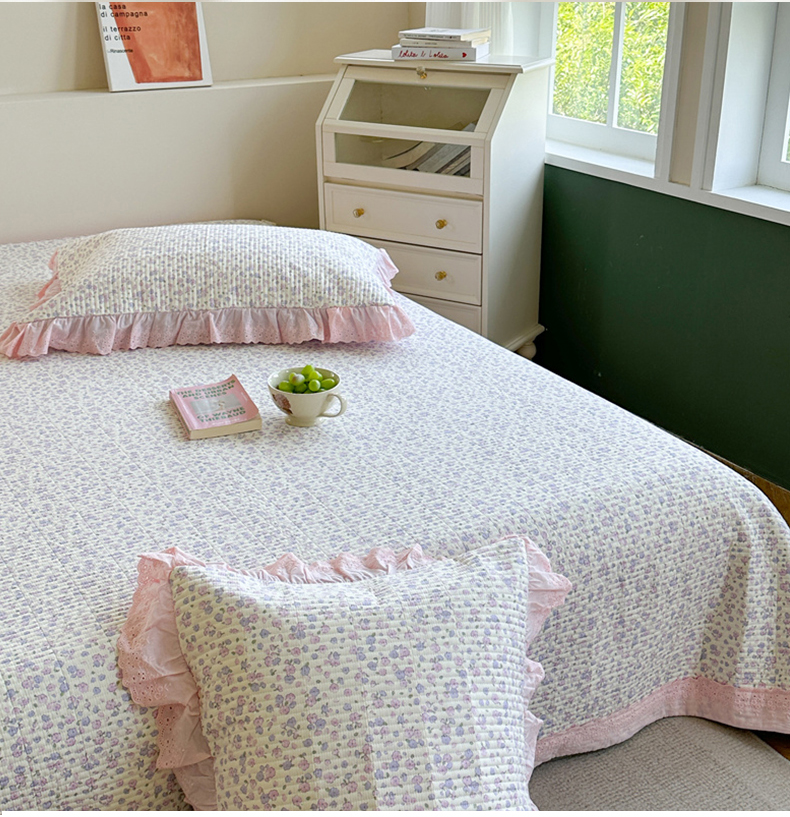 诗黛尔 2024秋冬新款全棉法式花边床盖套件 花悦