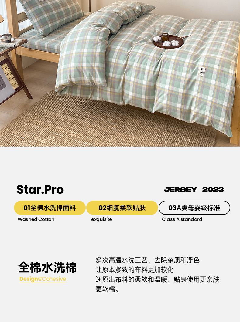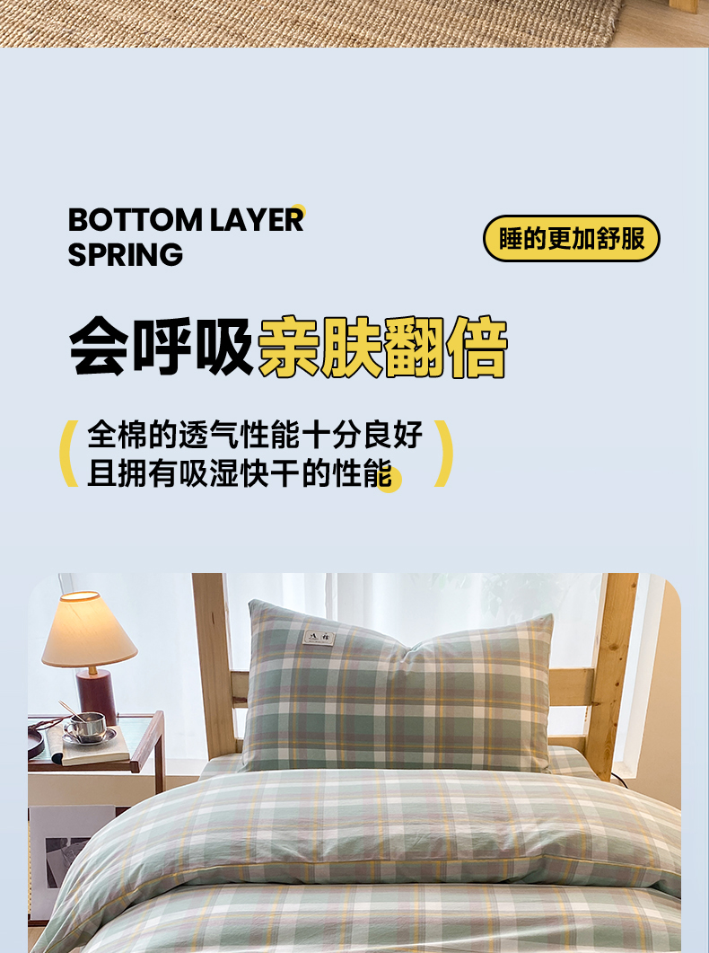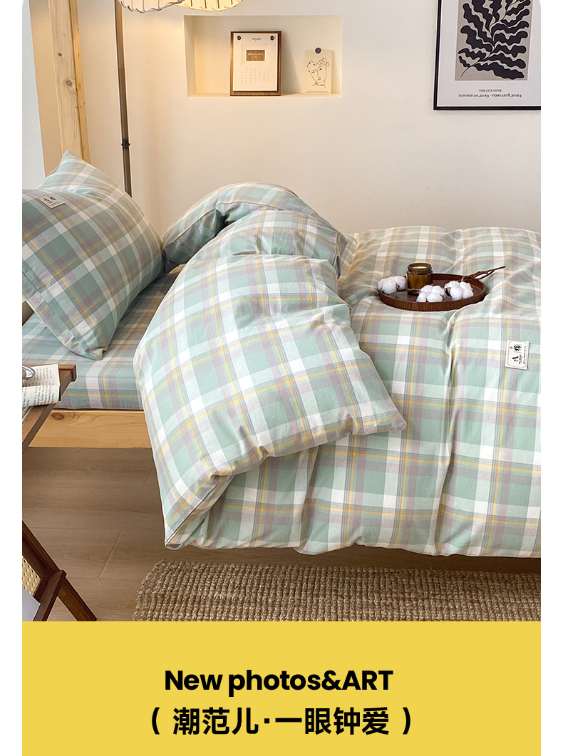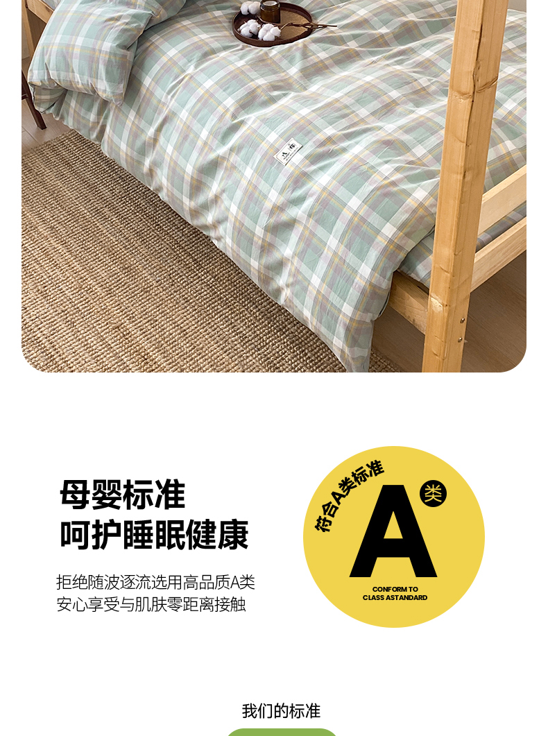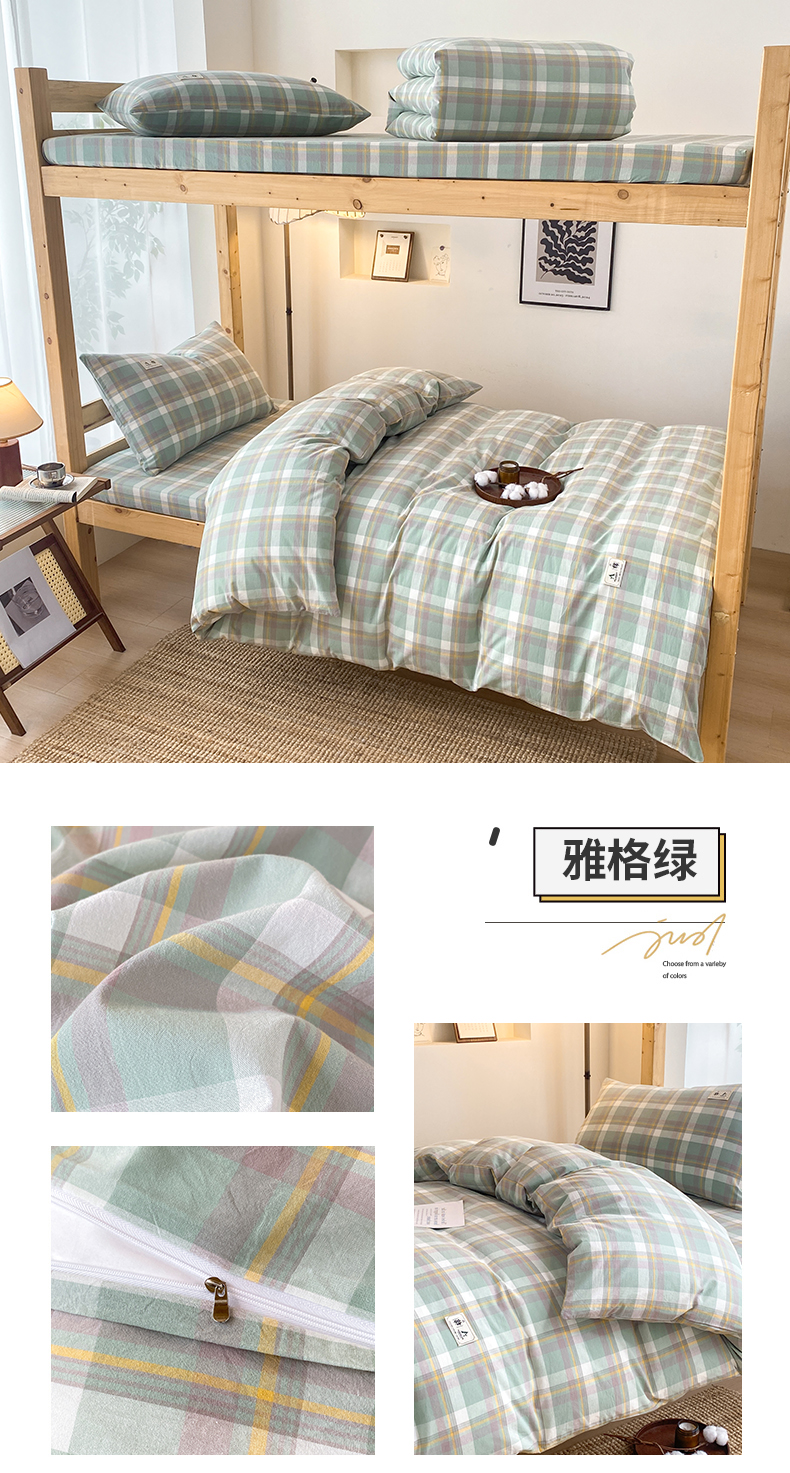 当前位置: 91家纺网 > 商品网购 > 床品套件 > 三件套 > 21度C 2024新款色织全棉水洗棉学生三件套 雅格绿
