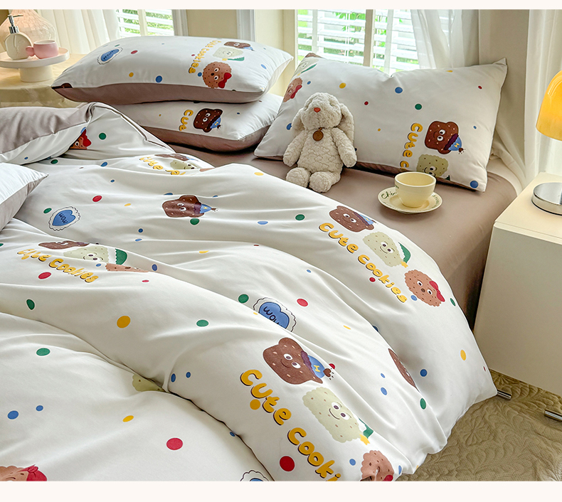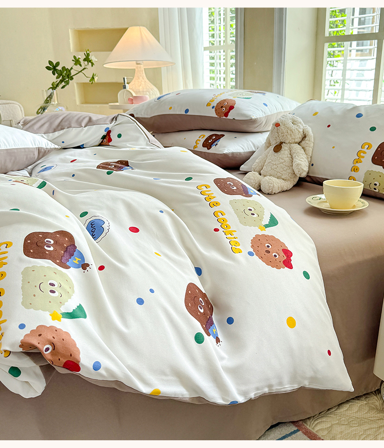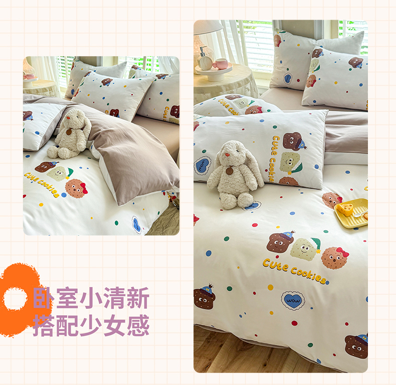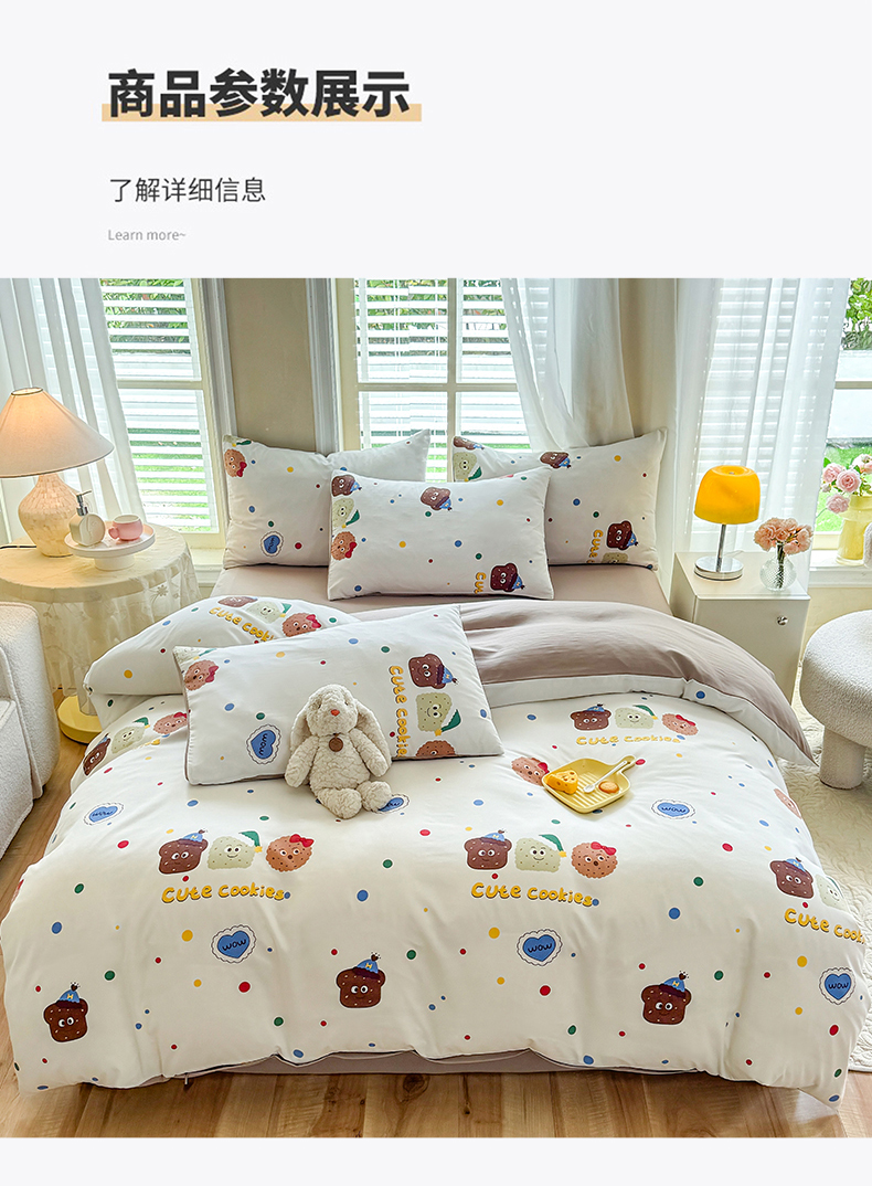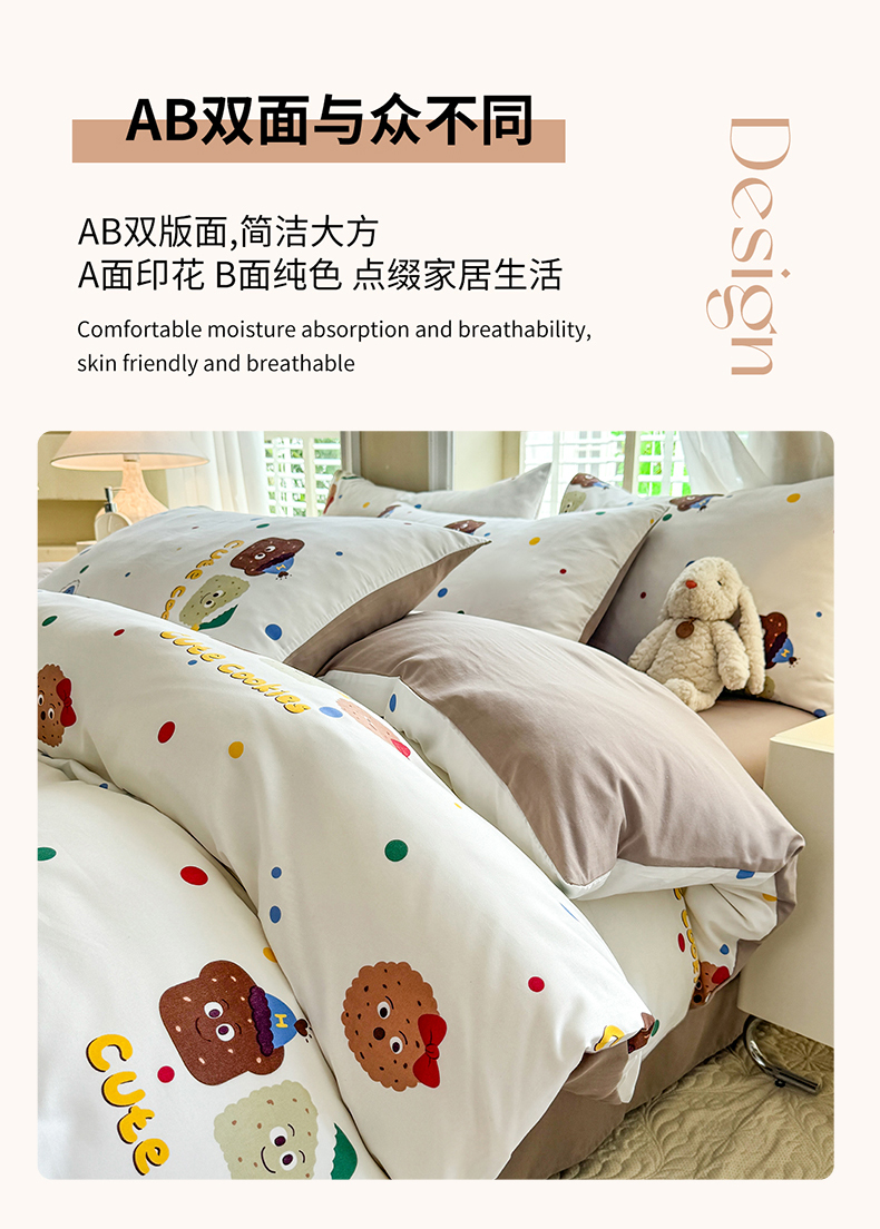 妖妖家纺 2023新款芦荟棉AB双版印花四件套 曲奇饼干