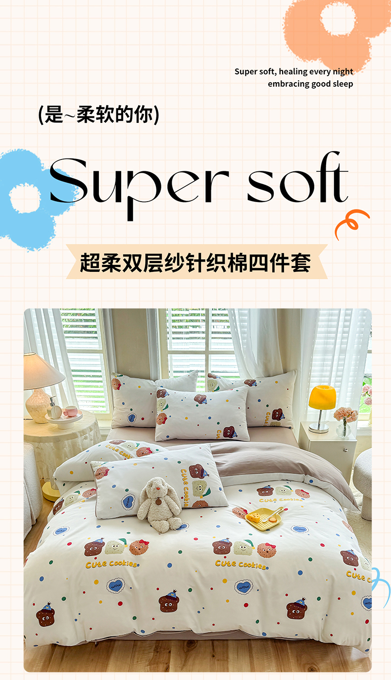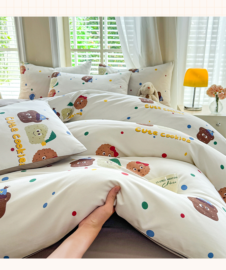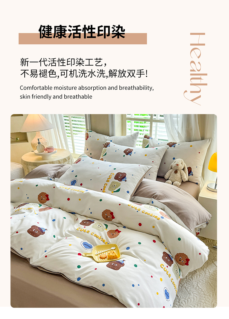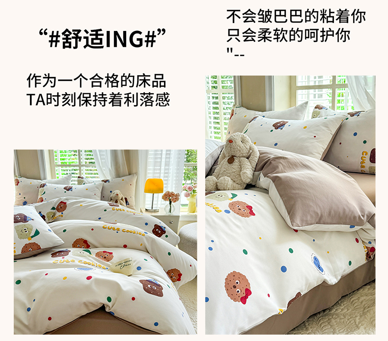 妖妖家纺 2023新款芦荟棉AB双版印花四件套 曲奇饼干