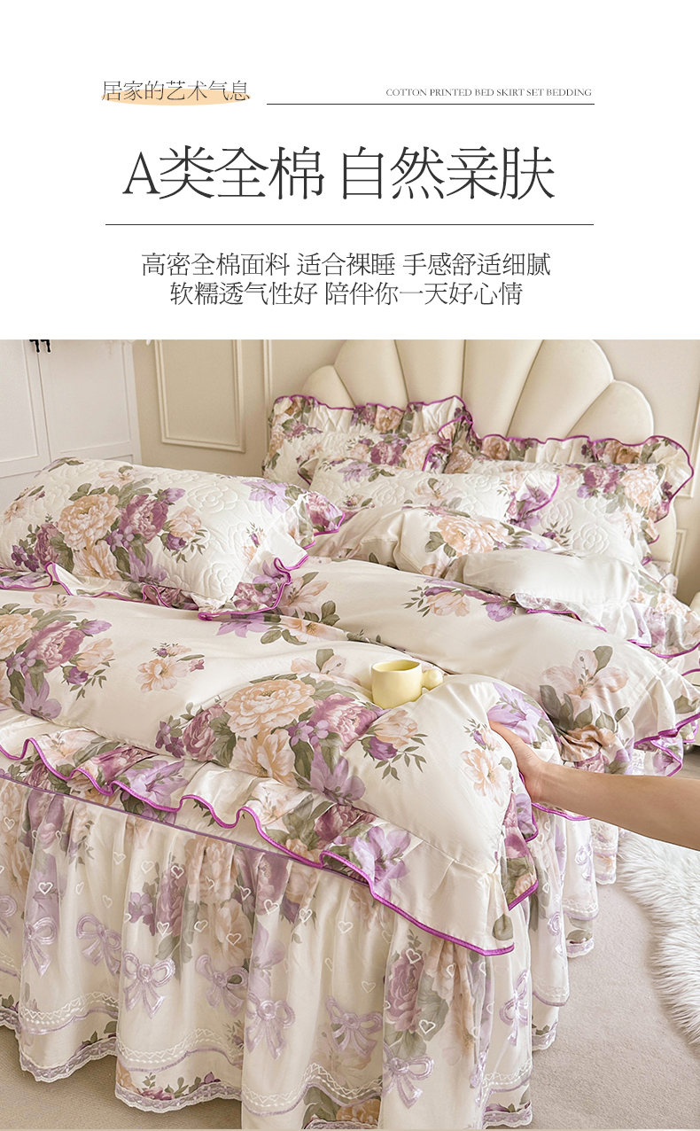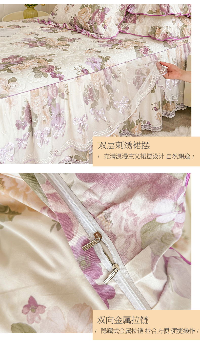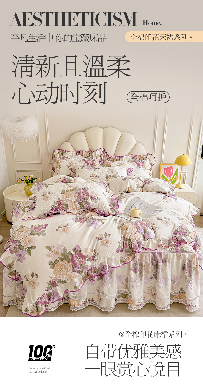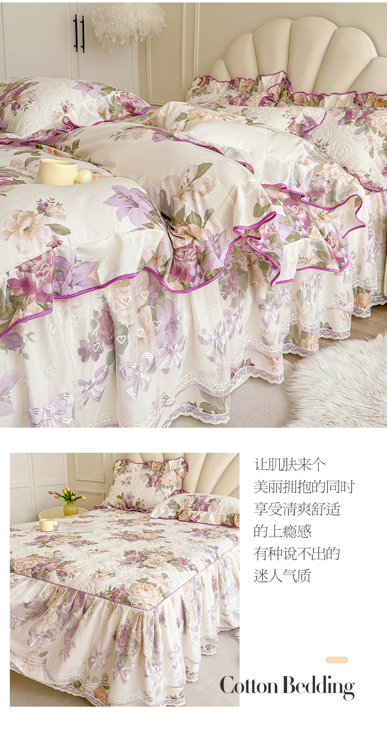 当前位置: 91家纺网 > 商品网购 > 床品套件 > 四件套 > 全棉普通四件套 > 宜凡家纺 2024新款全棉印花公主风夹棉床裙四件套 洛丽塔