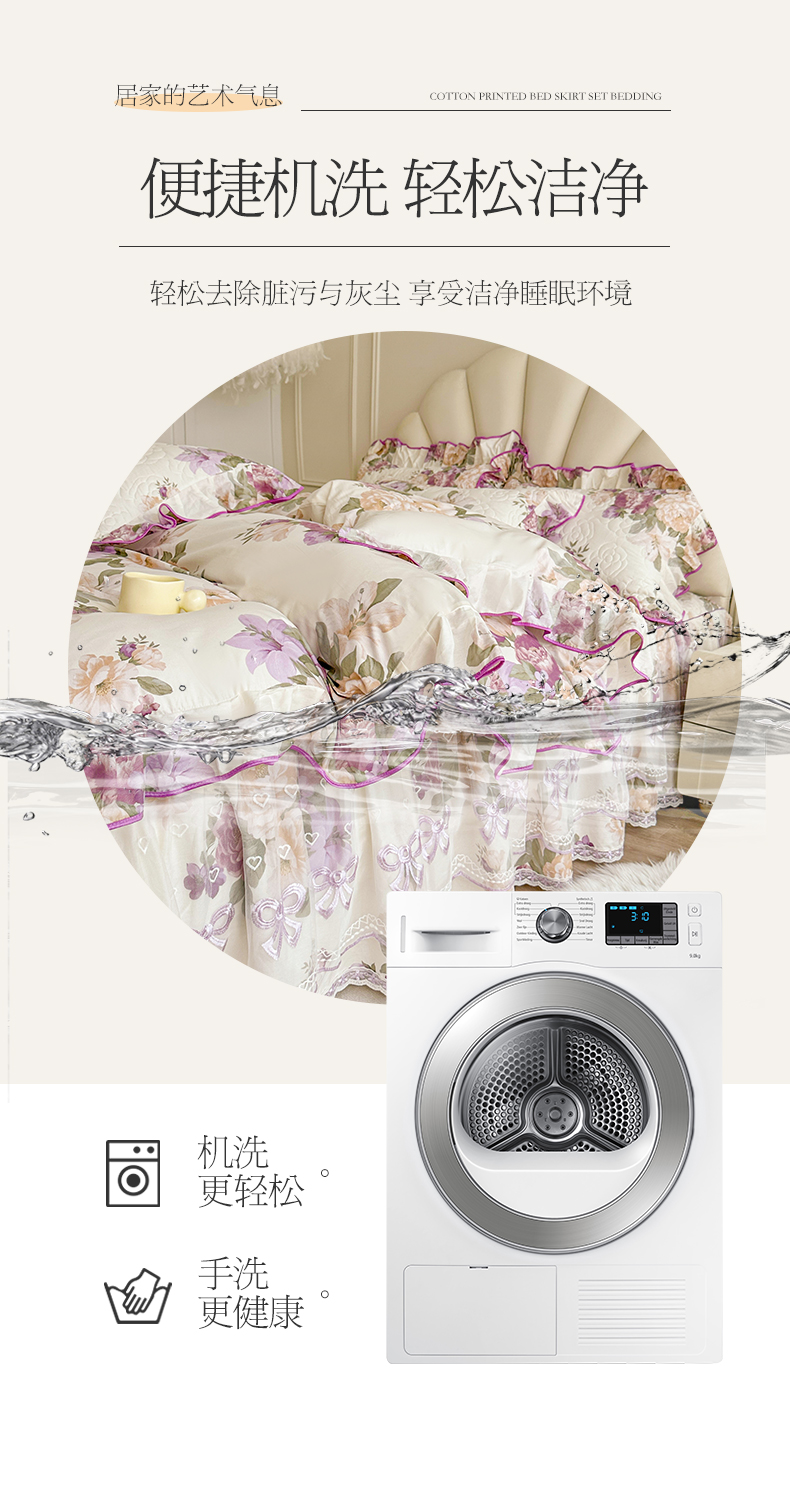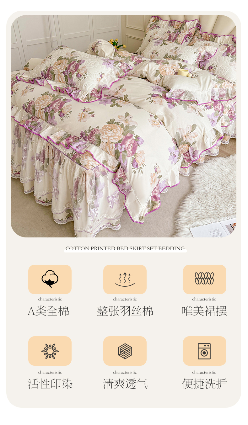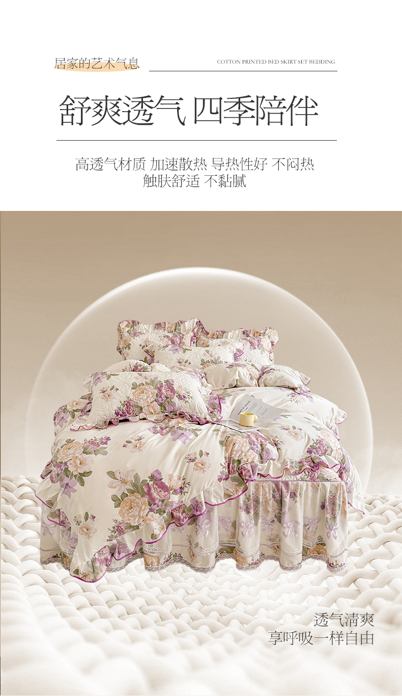当前位置: 91家纺网 > 商品网购 > 床品套件 > 四件套 > 全棉普通四件套 > 宜凡家纺 2024新款全棉印花公主风夹棉床裙四件套 洛丽塔