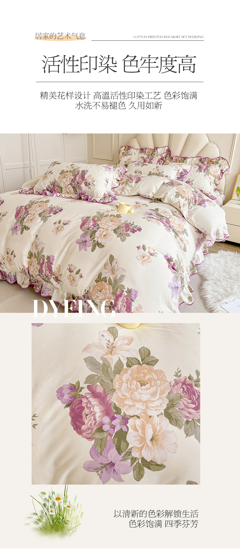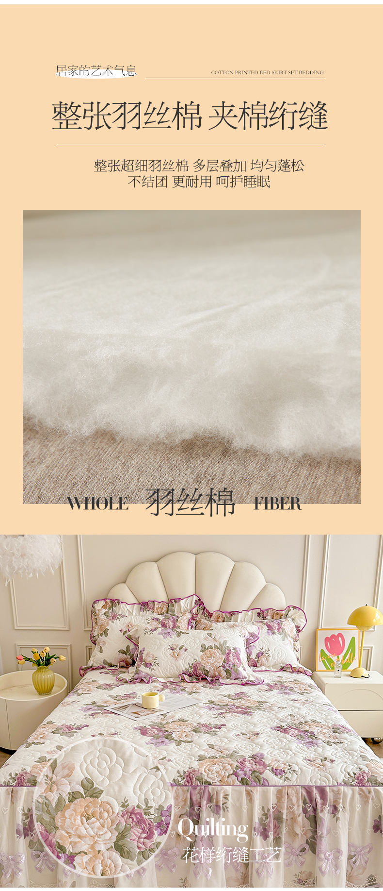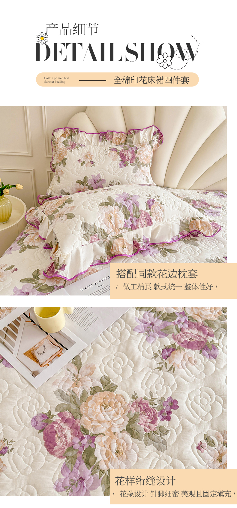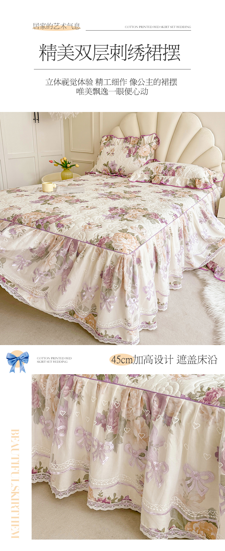 当前位置: 91家纺网 > 商品网购 > 床品套件 > 四件套 > 全棉普通四件套 > 宜凡家纺 2024新款全棉印花公主风夹棉床裙四件套 洛丽塔