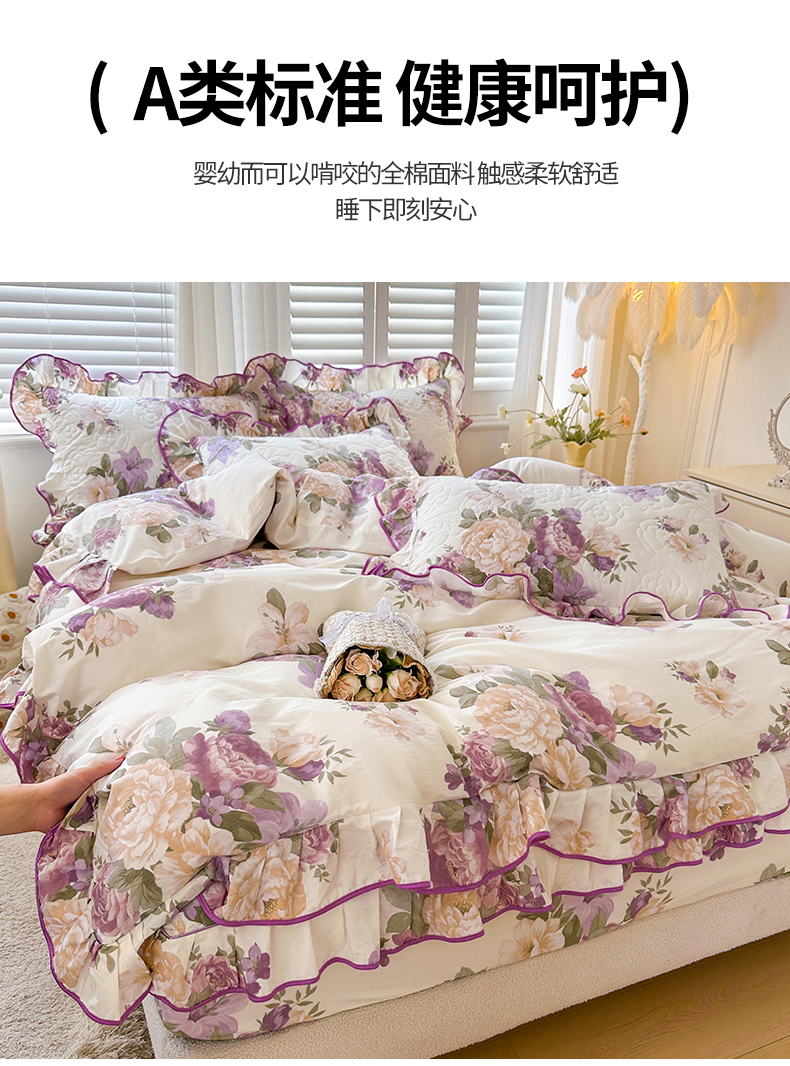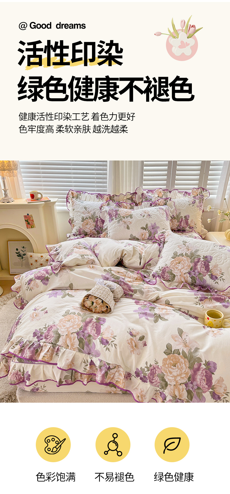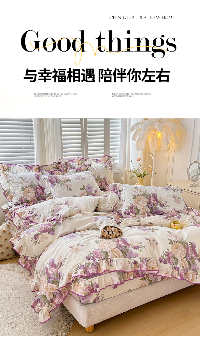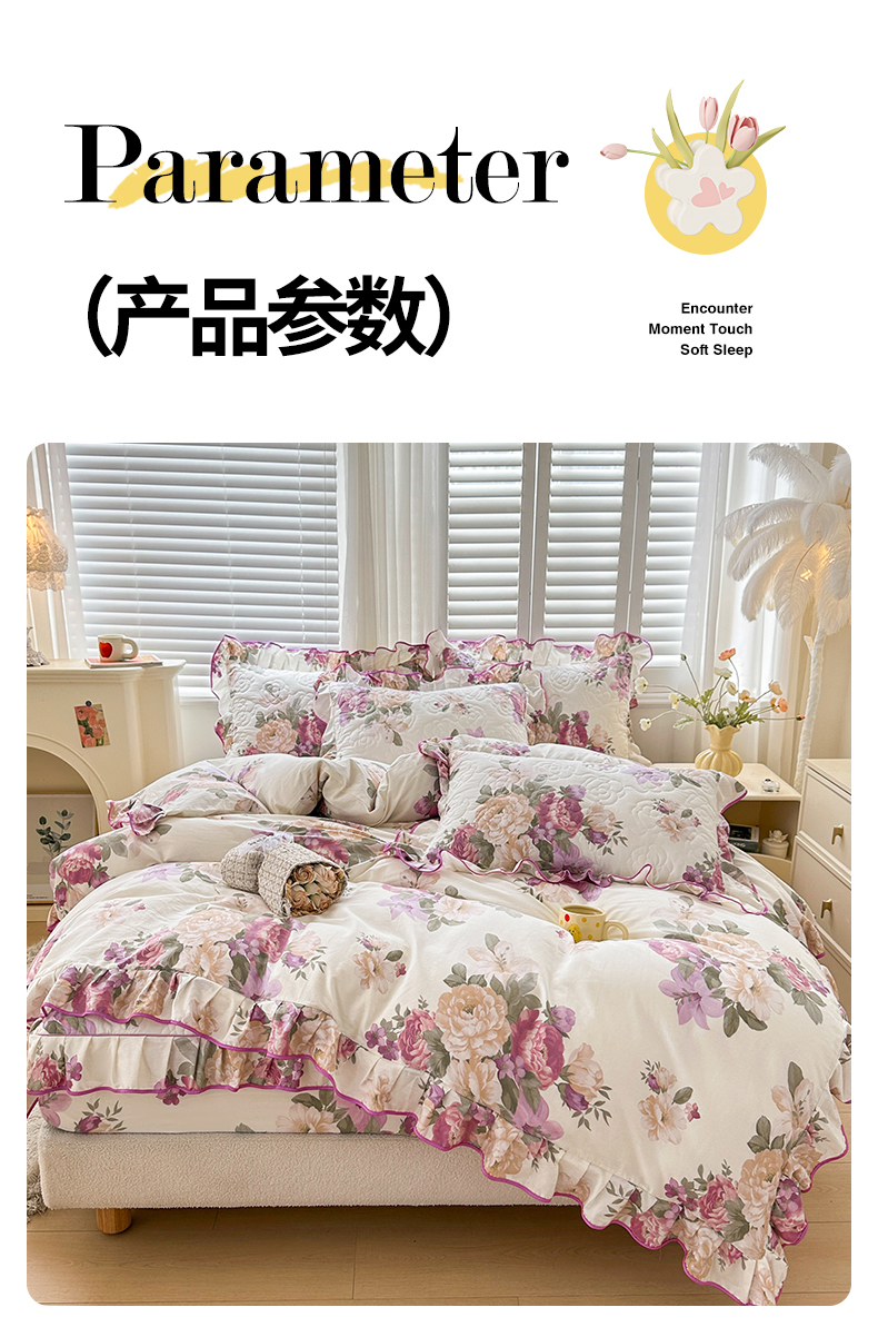 当前位置: 91家纺网 > 商品网购 > 床品套件 > 四件套 > 全棉普通四件套 > 宜凡家纺 2024新款全棉印花公主风夹棉床笠四件套 洛丽塔