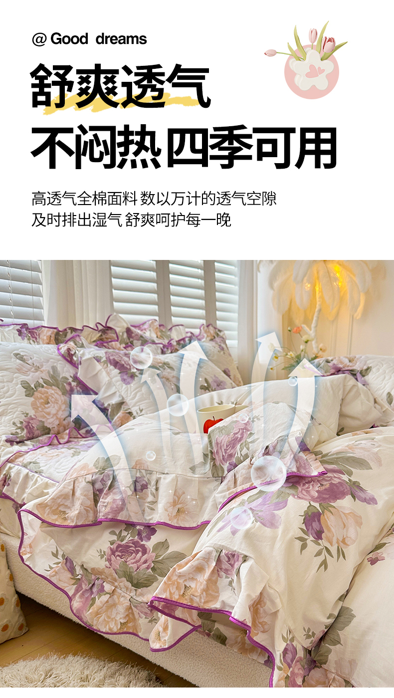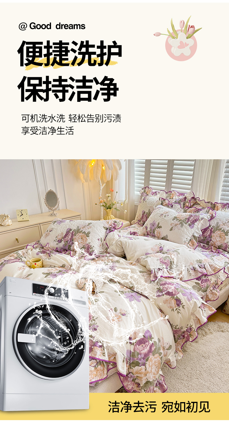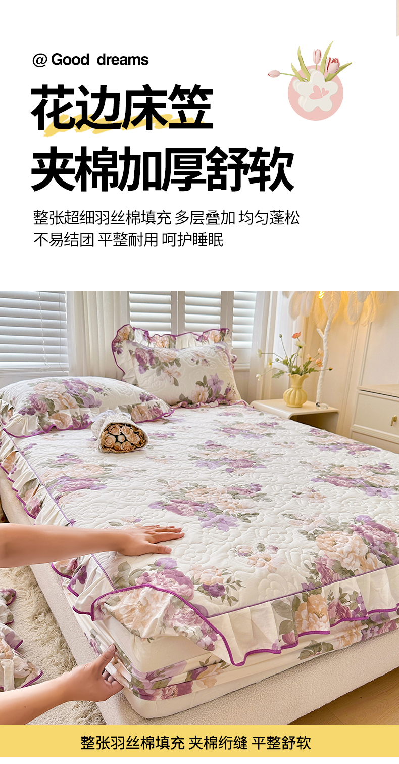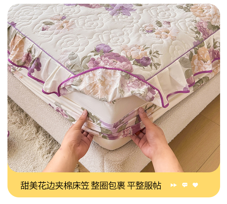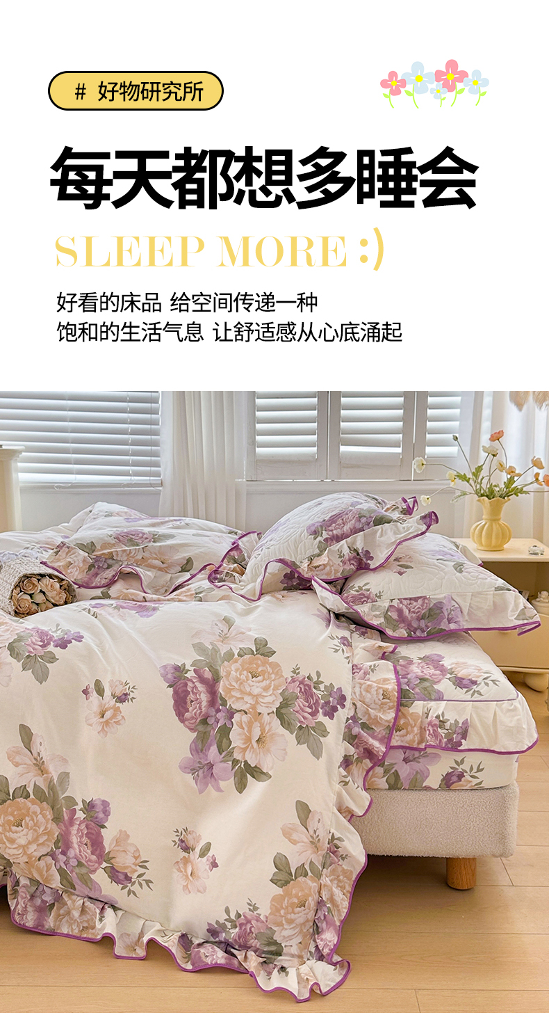当前位置: 91家纺网 > 商品网购 > 床品套件 > 四件套 > 全棉普通四件套 > 宜凡家纺 2024新款全棉印花公主风夹棉床笠四件套 洛丽塔
