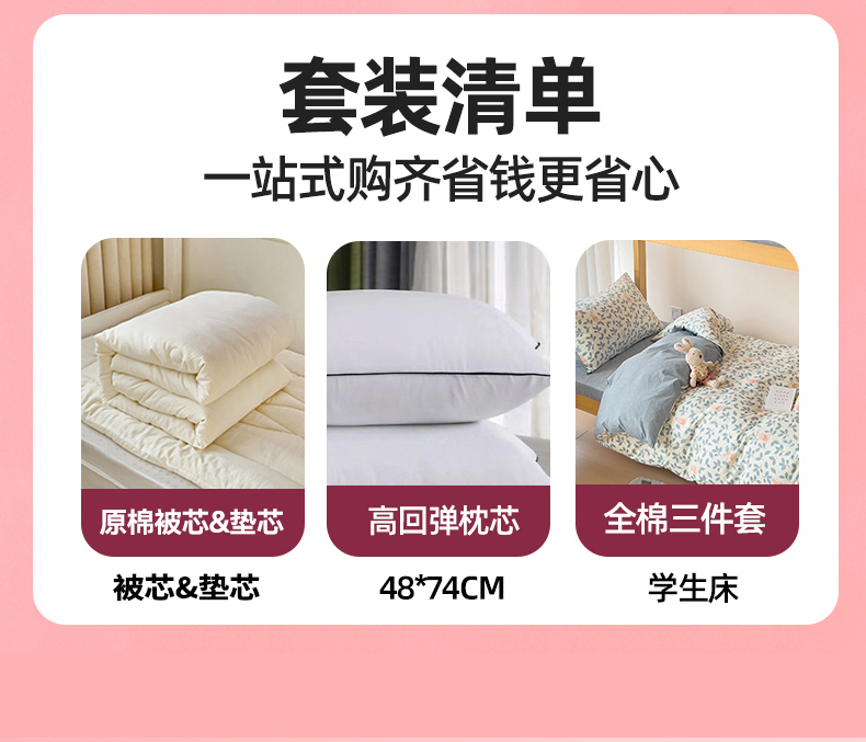 学生床五件套 【三件套+春秋被约3斤+枕芯】 | ¥136.00 |