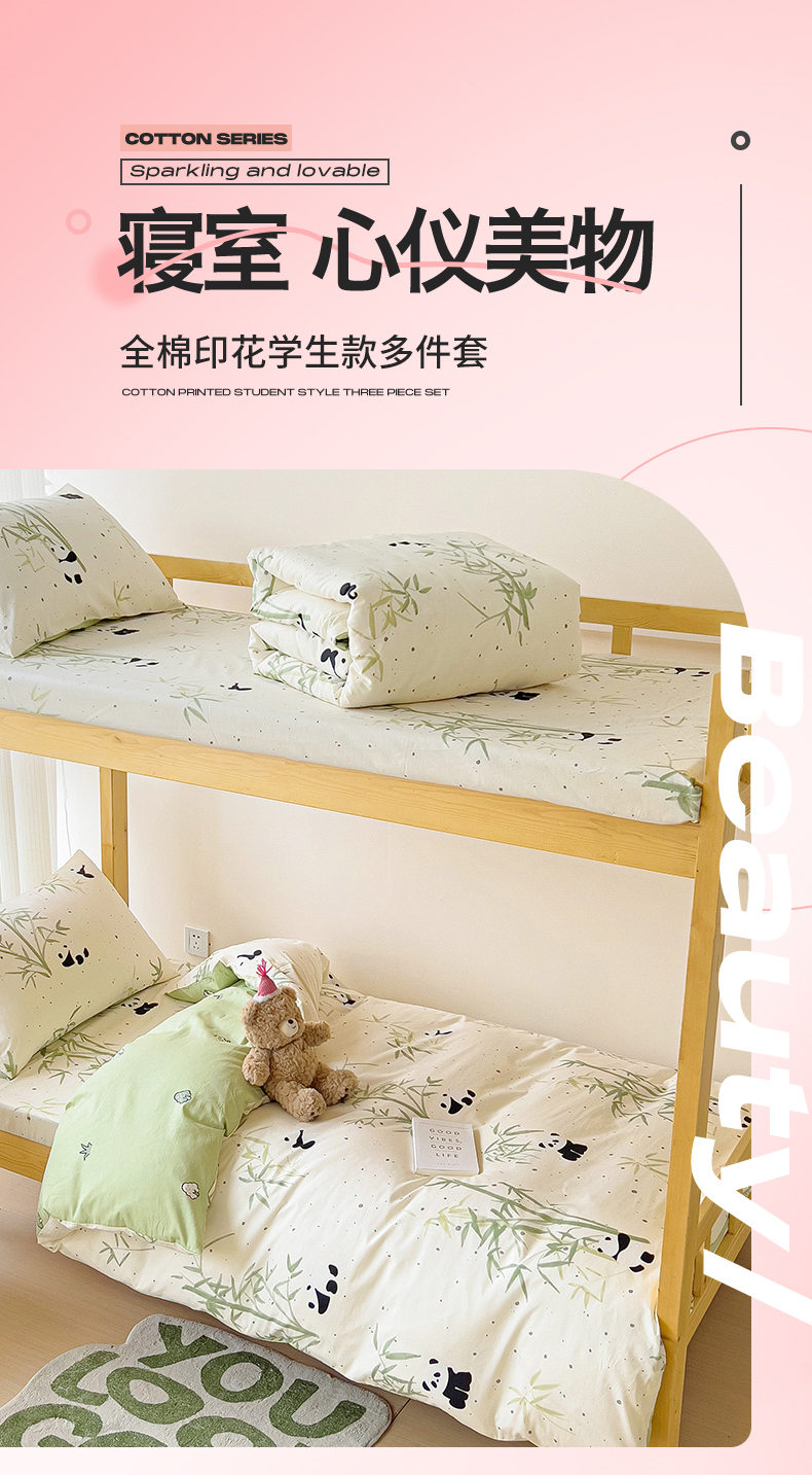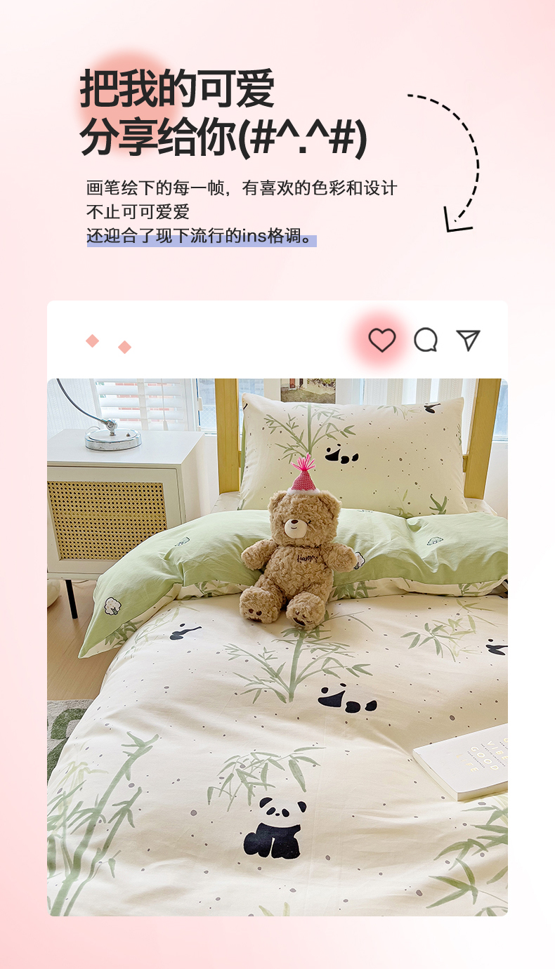 当前位置: 91家纺网 > 商品网购 > 床品套件 > 多件套 > 多件套 > 名兮家居 2024新款全棉印花学生款多件套 熊猫家园