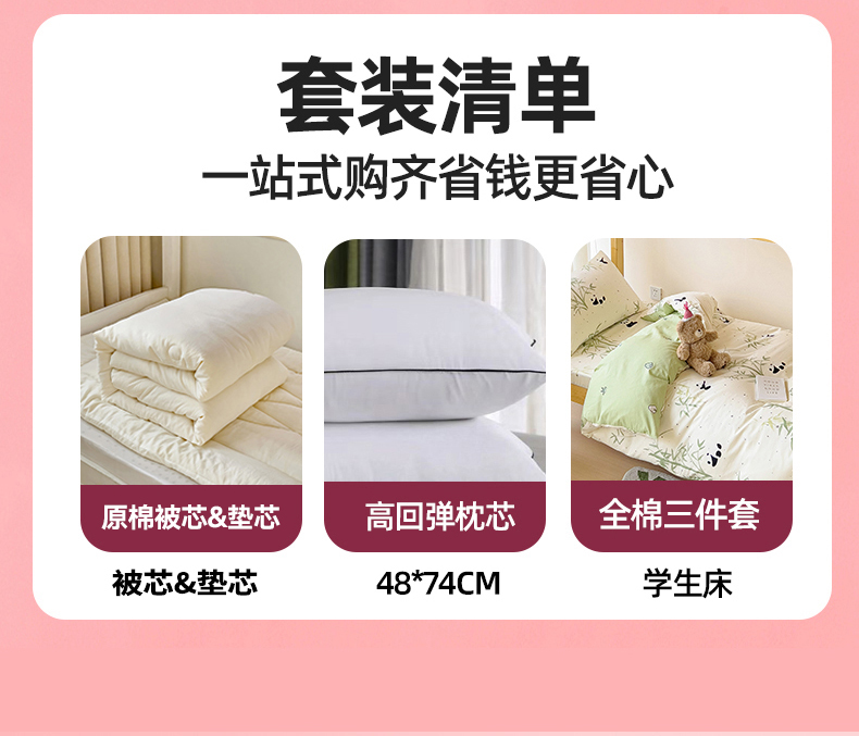 学生床五件套 【三件套+春秋被约3斤+枕芯】 | ¥136.00 |