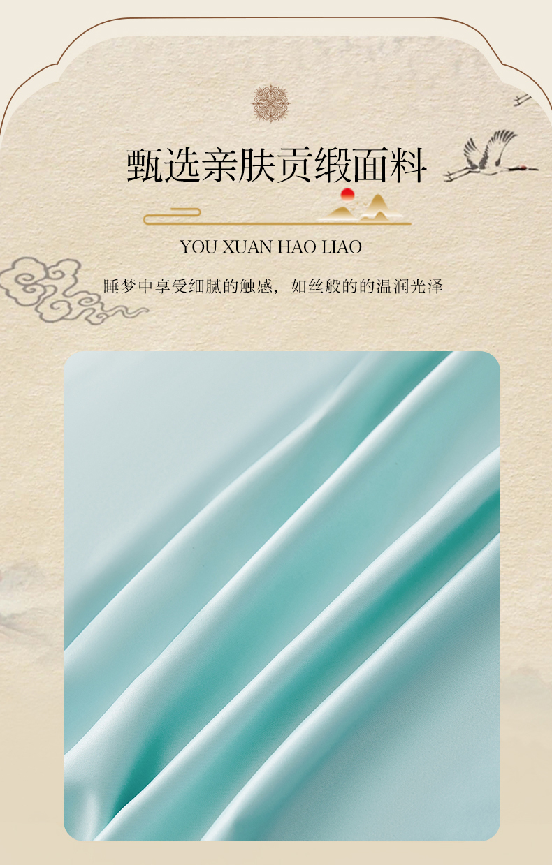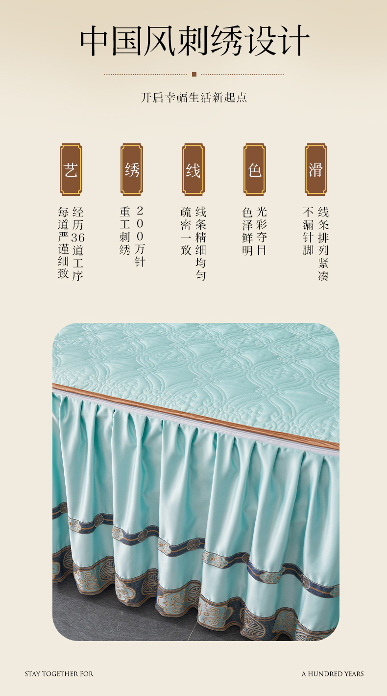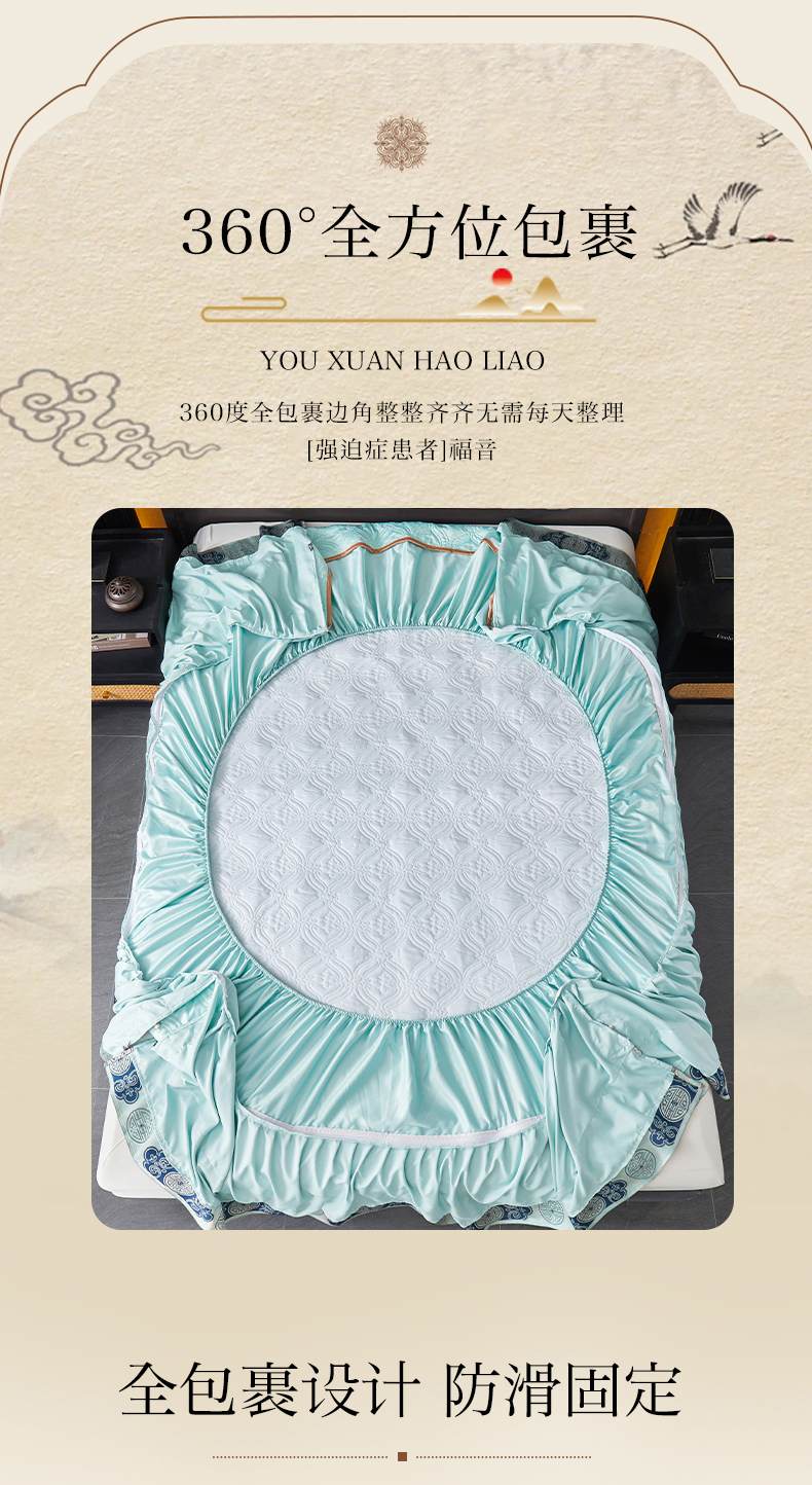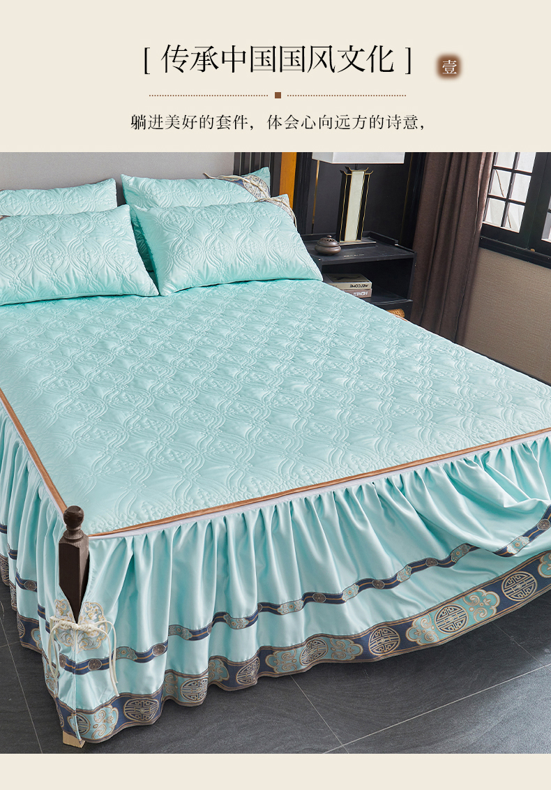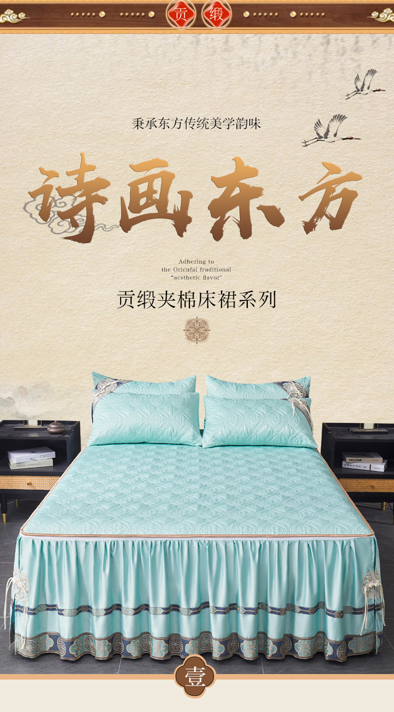 当前位置: 91家纺网 > 商品网购 > 床品套件 > 三件套 > 罗艺轩 2024新款贡缎夹棉中国风新中式系列床裙三件套 中国风-薄荷色